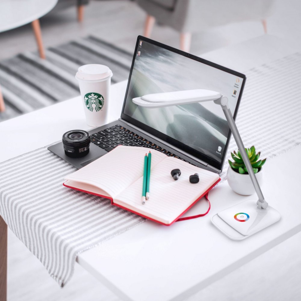 Farebná teplota svetla je plne nastaviteľná v širokom rozsahu 2700 až 9000 K – od teplej na relaxáciu až po studenú, ktorá podporuje koncentráciu. Svetlo má vysoký index podania farieb (CRI > 80), takže farby osvetľovaných predmetov pôsobia prirodzene a nezaťažujú zrak.