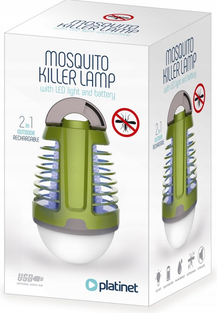Lampa je vybavena praktickým lapačem komárů a jiného nočního hmyzu, který je přitahován speciálním modrým světlem a poté (po dotyku kovové sítě zakryté v přístroji) rychle usmrcen.