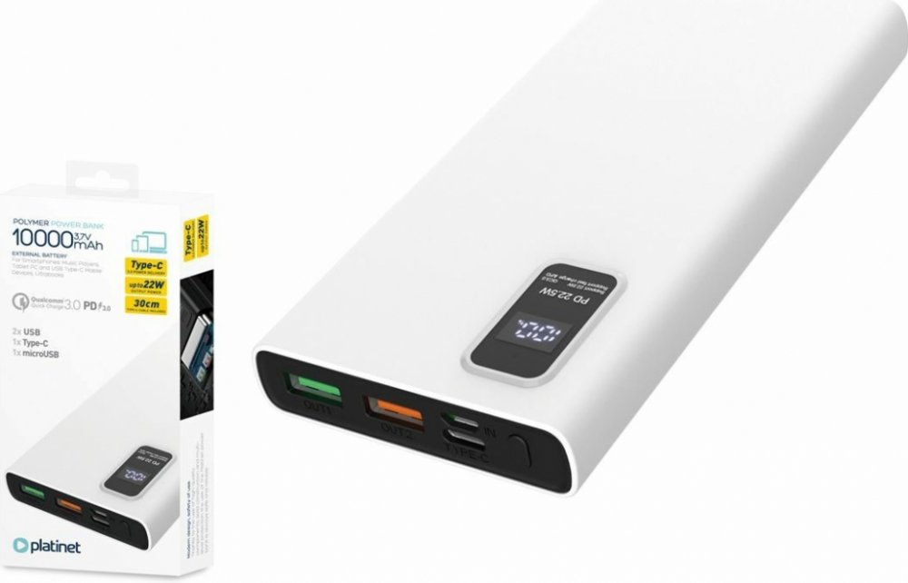Platinet 10000 mAh Li-Pol 236 g 3 hodin 22.5 W 4.5 A 2 bílé