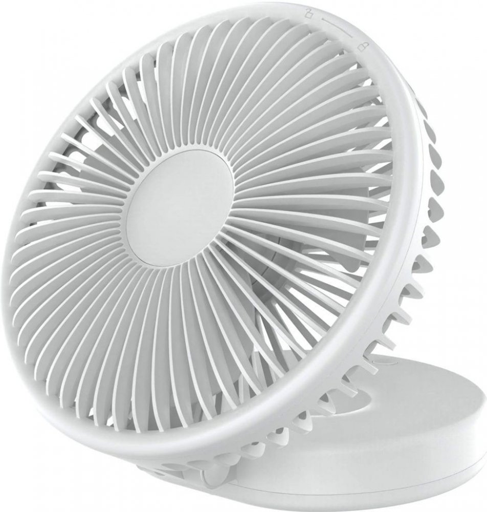 Stolní přenosný ventilátor nabíjecí. Průměr 19cm. Výkon: 10W. 3 rychlosti. Možnost nasměrování ve dvou osách. Pracovní doba: až 8 hodin. Typ akumulátoru: 18650 Lithium ion 2kusy. Napětí a kapacita akumulátorů: 3,7V/2400mAh. LED indikátor stavu nabíjení. Nabíjení přes USB-C (1,5m kabel součástí balení).Doporučený nabíječ: 5V/2A (není součástí balení). Rozměry: 190x76,5mm.