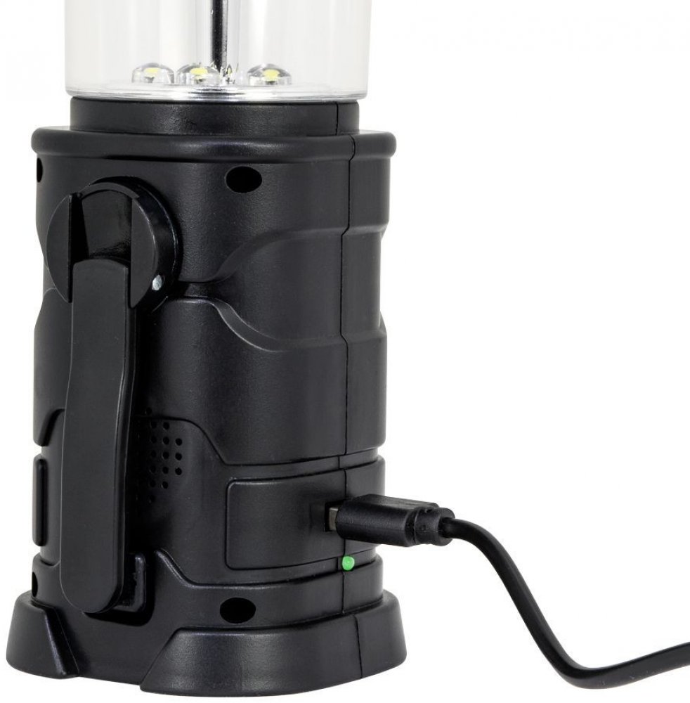 Solární kempingová lucerna, 3 způsoby dobíjení, 5 jasných LED diod, možnost zavěšení, výška 18,5 cm. Solar & Dynamo LED lucerna s rádiem 2v1