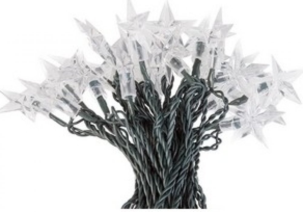 Světelný řetěz s 50 LED žárovkami ve tvaru hvězdiček. Blíží se Vánoce a kdo by nechtěl mít krásně vyzdobený byt nebo dům. Vánoční LED řetěz je určen zejména pro ozdobení vánočního stromečku, vyzdobit si ale můžete také okna, nebo různé části interiéru. LED úsporný světelný řetěz je určen pro vnitřní i venkovní použití. Díky LED technologii je tento světelný řetěz nárazuvzdorný a nevydává žádnou tepelnou energii.