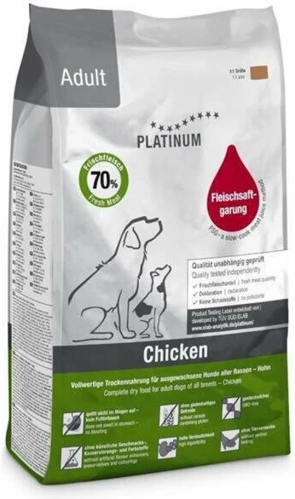 Platinum pro dospělé pro všechna plemena s běžnou aktivitou kuřecí Platinum 5 kg superprémiové suché na alergie poloměkké Prémiové 26 % rýže 5 kg z Německa střední (200-500mg) 16 % 2 % 1.5 % 1 % 7.9 % 0 % vysoká deklarováno (>40%) standardní základní základní možné částečná (země výroby)