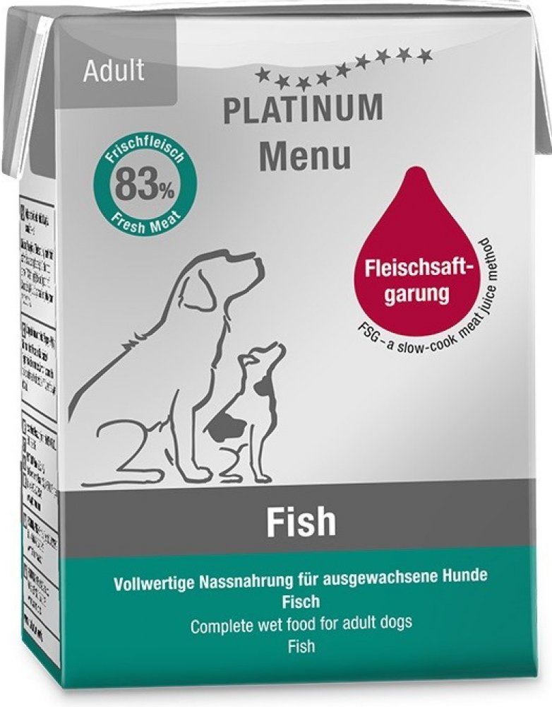 Platinum Menu je připraveno metodou Fleischsaftgarung Za použití metody FSG je čerstvé maso vařeno ve vlastní šťávě bohaté na živiny, stejně jako v kuchyni. Naše Platinum Menu je připravováno technikou krátkého vaření. Tato technika lze být použita pouze díky kartonu Tetra Recart, jelikož je umožněno dosáhnout požadované teploty uvnitř obalu rychleji než u běžné konzervy.