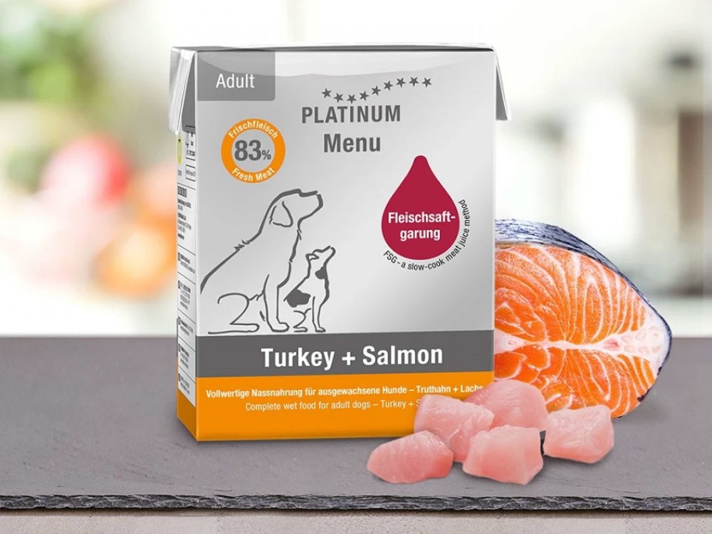 PLATINUM Natural Menu Krocan + Losos 185 g - Kvalitní paštika s lososem a krůtím masem pro dospělé psy. Vysoký podíl čerstvého masa (až 83 %), brambory, olivový olej a zelenina. Bez konzervačních látek. Balení 185 g. - Kompletní masové krmivo pro dospělé psy všech plemen. Vysoký podíl hodnotného lososa a krůtího masa jako výživný zdroj kvalitních bílkovin. Šťavnaté maso bez konzervačních látek a d...