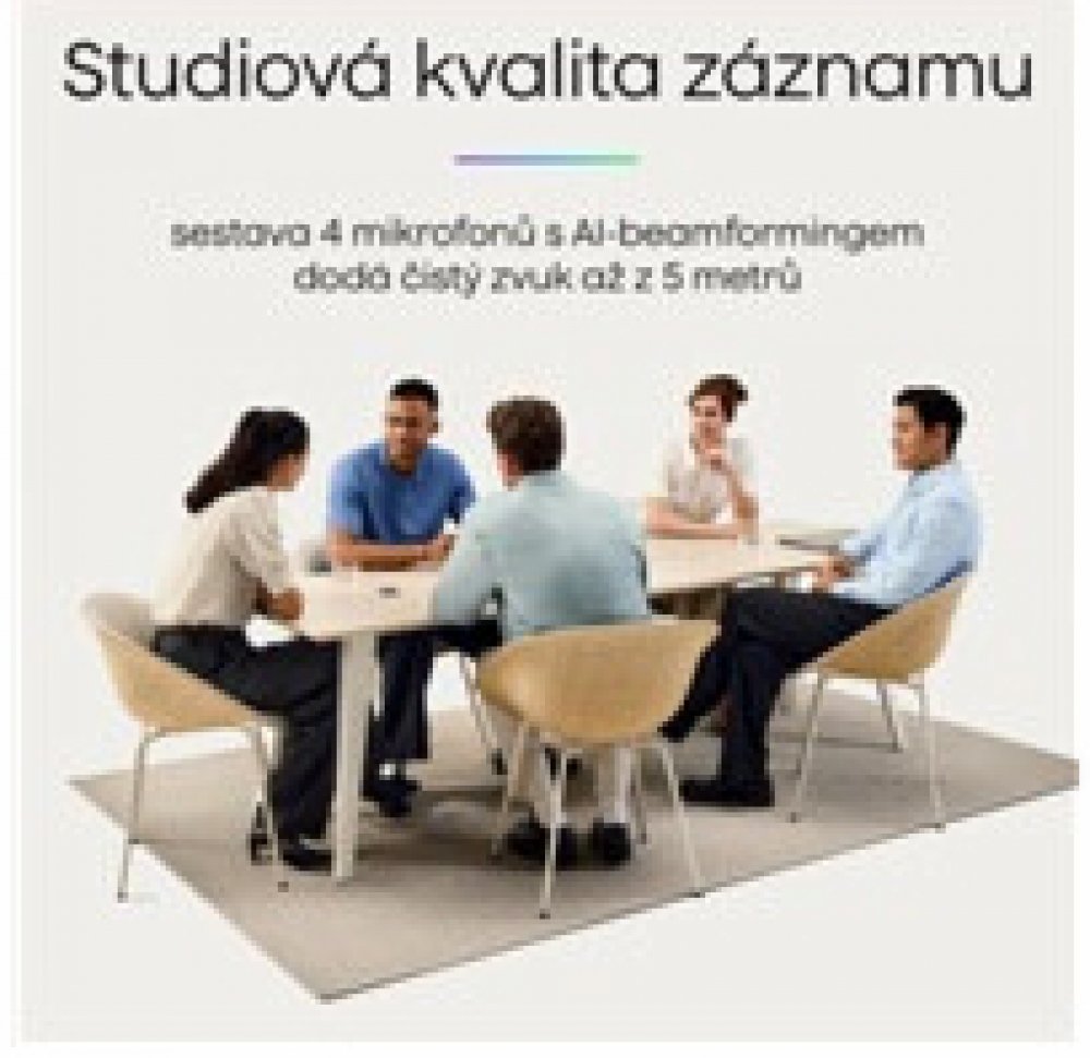 4 MEMS mikrofony s detekcí pozice řečníka pro studiově čistý záznam až na 5 metrů