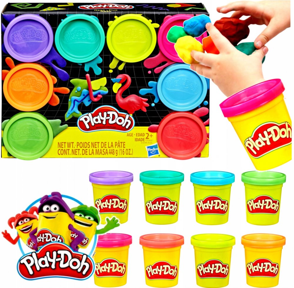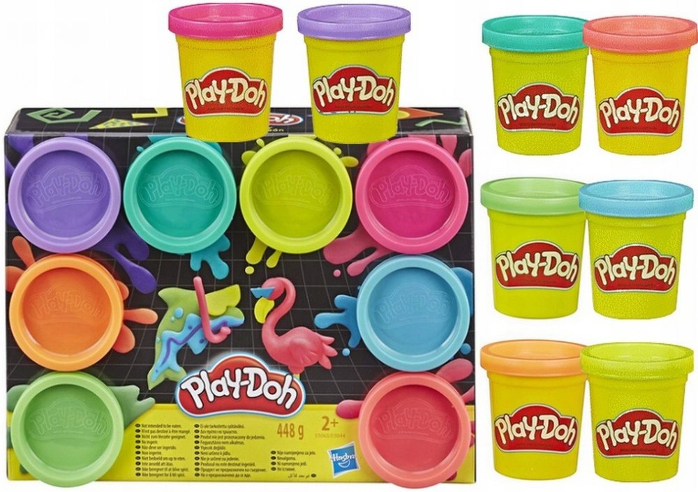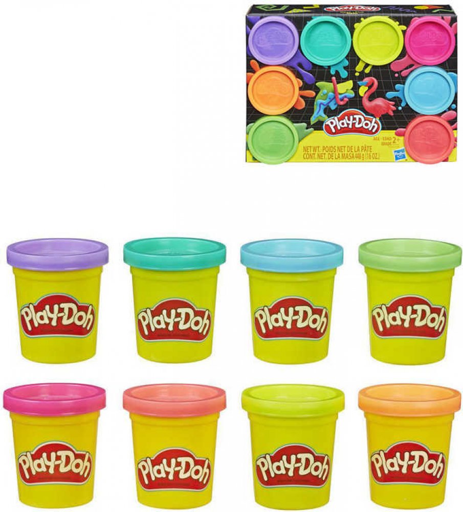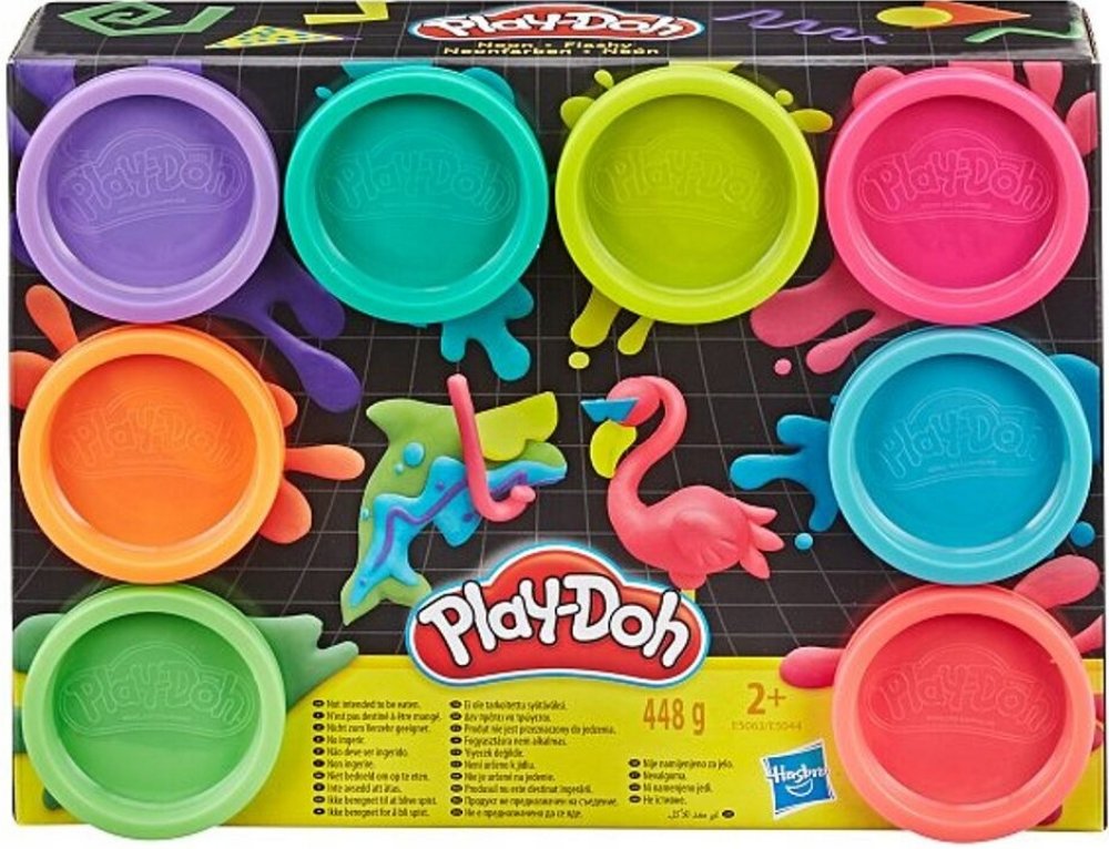 Dodejte svým výtvorům jiskru s těmito osmi neonovými barvami modelíny Play-Doh. Dvě varianty mixu barev v setu.