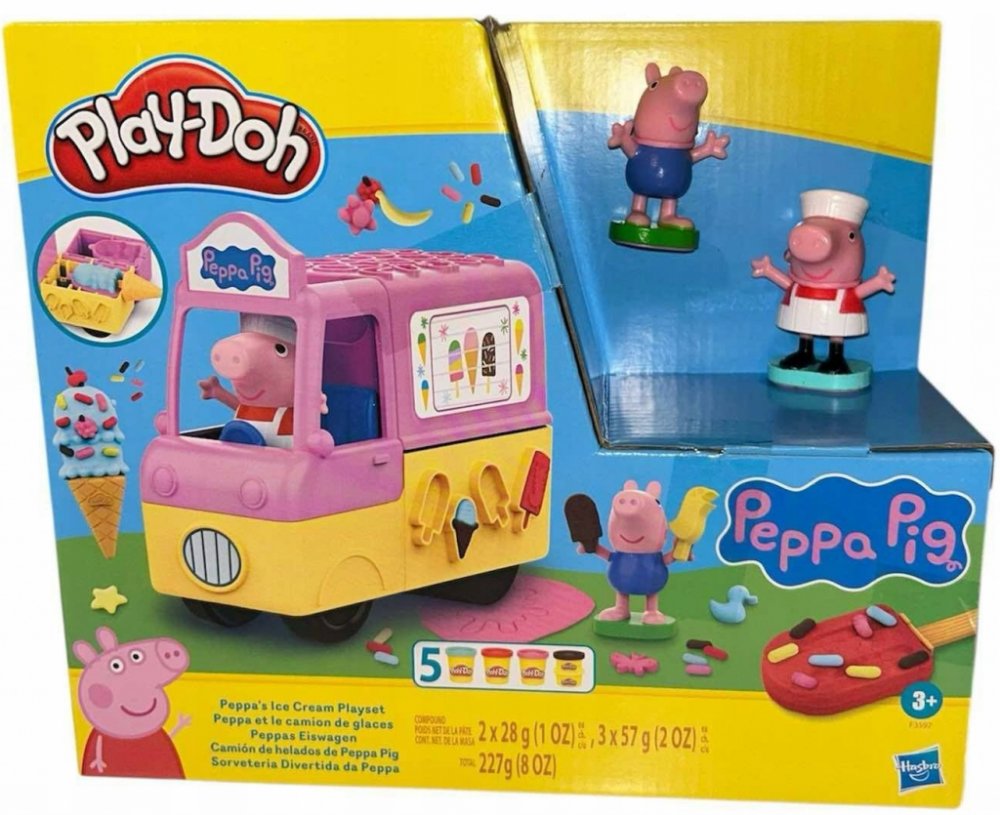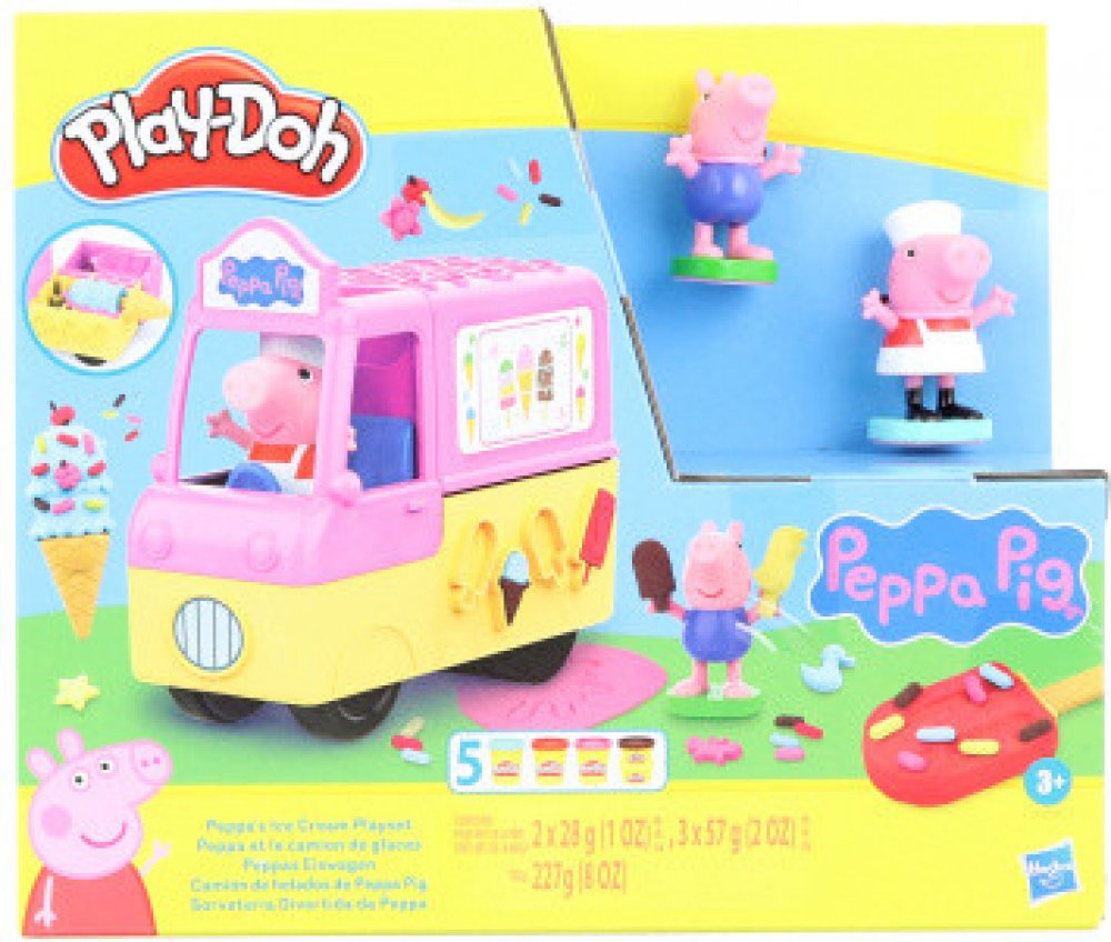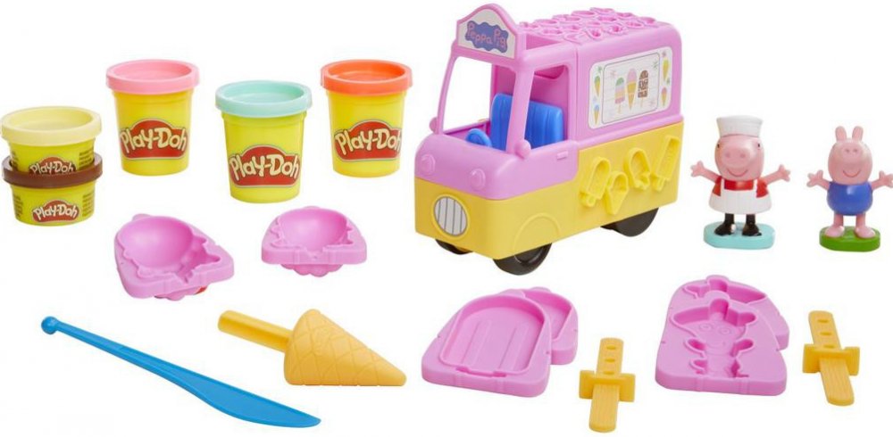 Prasátko Peppa si prostě zmrzlinu neodpustí! Kroky letní zábavy nepochybně povedou směrem Play-Doh pochoutek na osvěžení. Se zmrzlinářským vozem si užijete spoustu legrace. Najdete v něm vyměnitelné