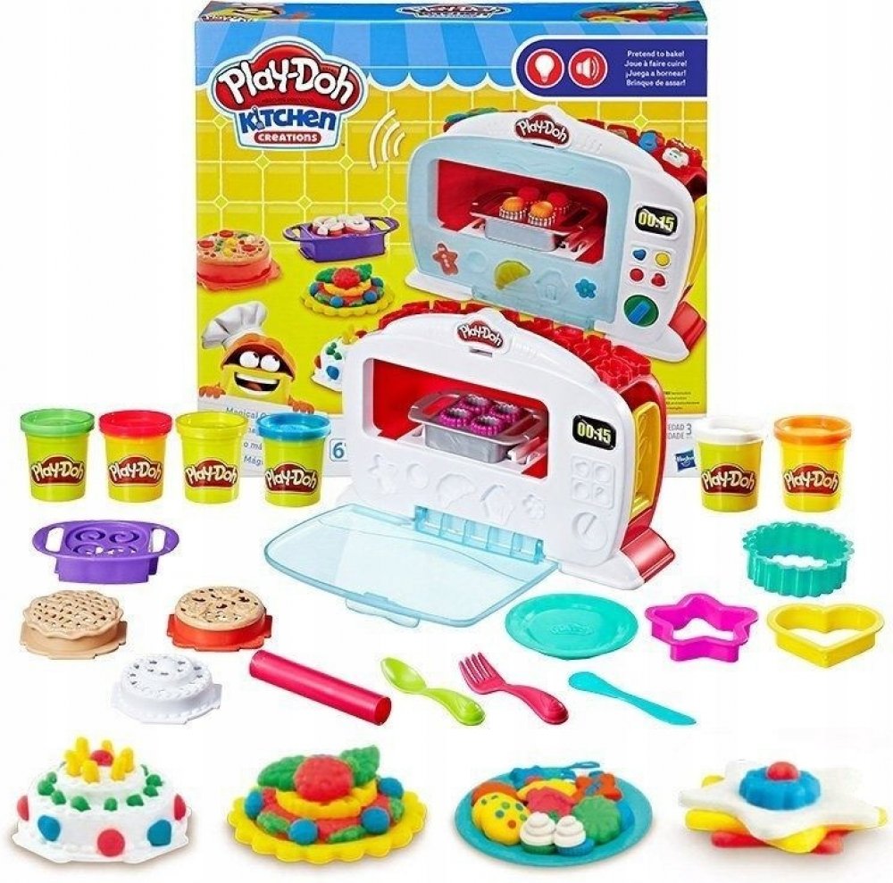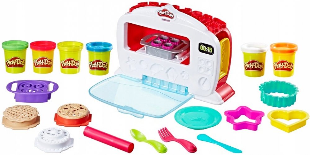 Chtěli byste se stát cukrářem nebo připravovat nápadité pokrmy? Vstupte do světa zábavy s sadou Kouzelná trouba od Play-Doh! Nebude vám zde nic chybět, k dispozici jsou vám nápadité formičky a nezbytné doplňky. Nezapomeňte na nejdůležitější složku vašeho pečiva – představivost! Je to fantastická zábava, bezpečná zábava bez použití teploty a špinavého nádobí!