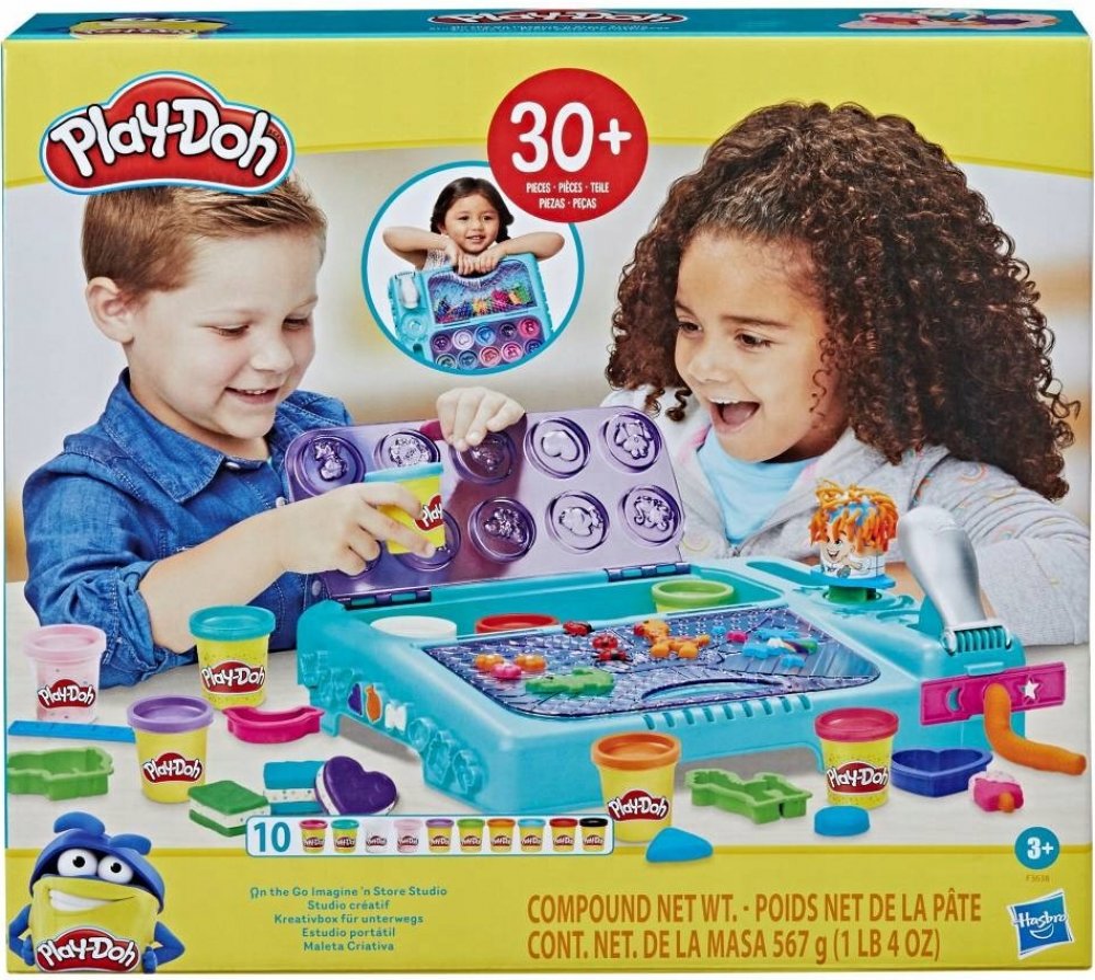 Modelína Play-Doh – super sada pro dílnu F3638. Sada podněcující představivost „vše v jednom“ se spoustou doplňků, úložným prostorem a klasickým dortíkem Play-Doh! Sada obsahuje vestavěné prvky kadeřníka a továrny na zábavu – lisy na různé tvary s vyměnitelnými nástavci, vykrajovátka a další doplňky a také spoustu známého a ceněného dortíku, který nabízí neomezené možnosti. Kromě toho je součástí balení místo pro uložení tub s dortíkem Play-Doh a nádoba na příslušenství s víkem zdobeným tvary pro otiskování zajímavých vzorů. Super Workshop je dostatečně velký, aby se do něj vešly tuby s dortíkem a doplňky, ale zároveň je kompaktní a má rukojeť, abyste si ho mohli vzít s sebou na víkend u babičky nebo kamkoli, kde přijde chuť na zábavu!