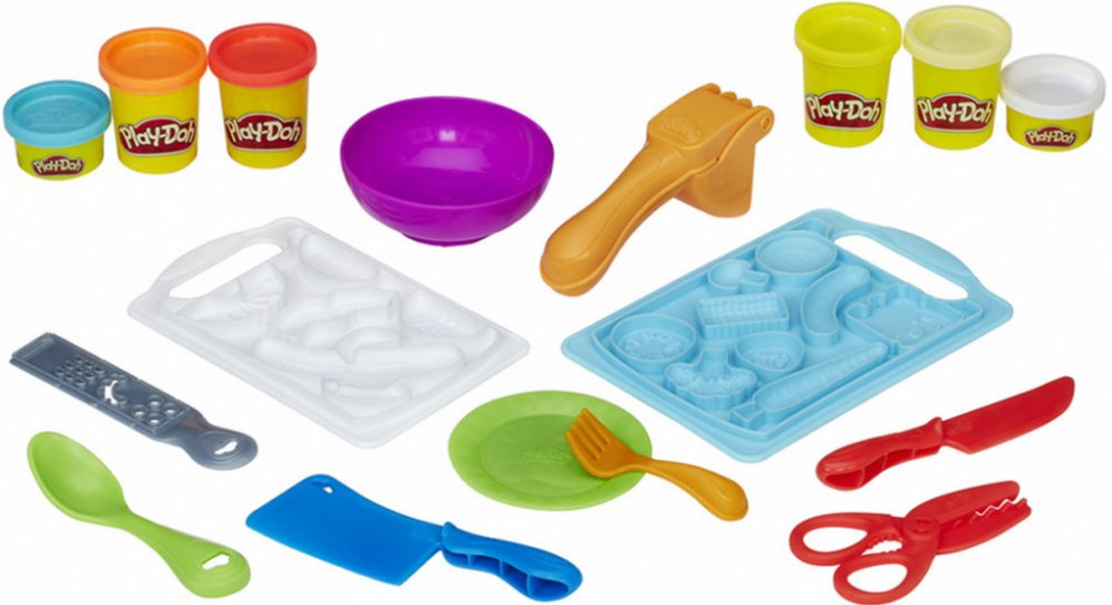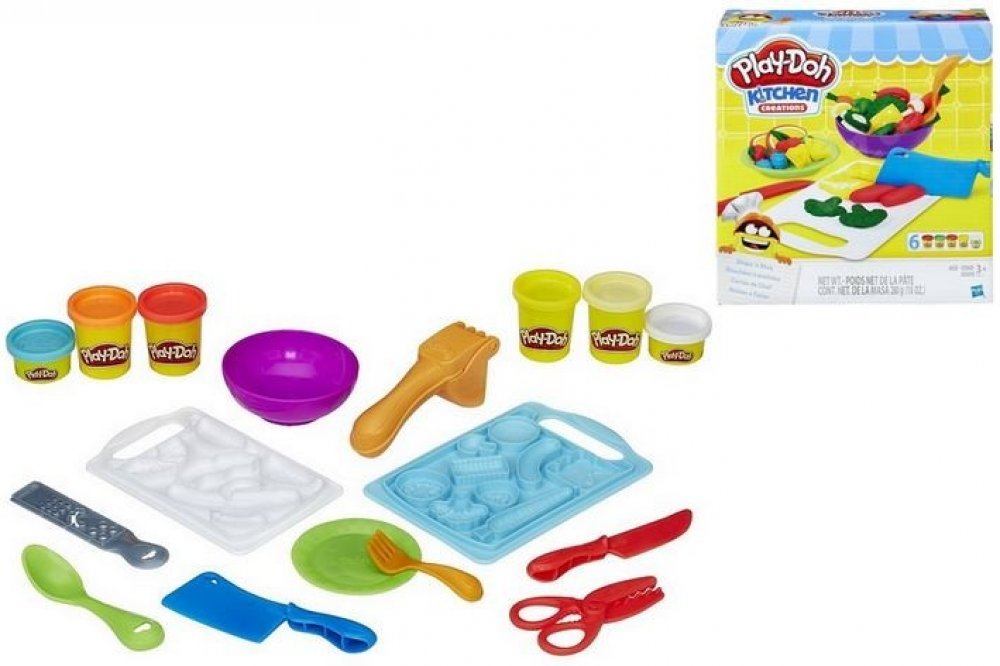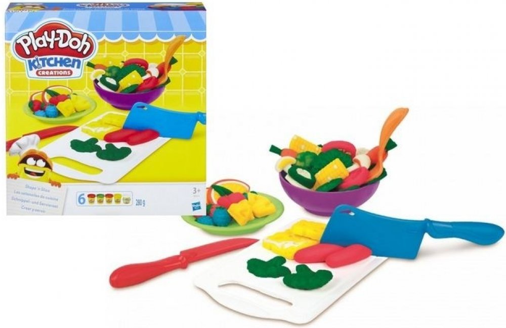 Vykrájejte a vymodelujte kulinářské výtvory z modelíny Play-Doh! Tato zábavná sada s kuchyňskou tématikou dovoluje nápaditým šéfkuchařům vytvářet a vykrajovat pestrobarevné Play-Doh pokrmy. Prkénka obsahují spoustu forem k vytvarování směsice ovoce, zeleniny či masa a dalších. Krájejte vymodelované suroviny na prkénku pomocí sekáčků, nožů a škrabek nebo je dejte do lisovacího nástroje. Hostinu pod...
