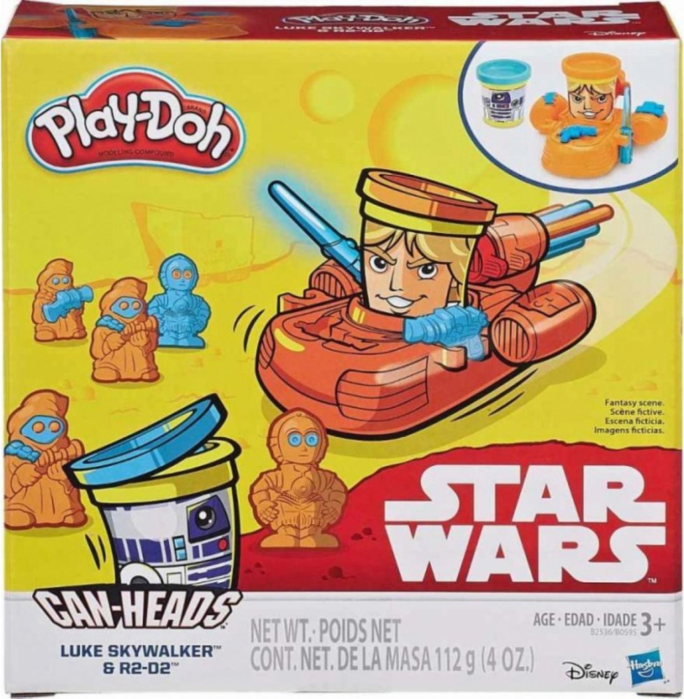 Luke Skywalker s R2-D2 a 2 kelímky modelovací hmoty Play-Doh značky Hasbro. Kelímky na motivy hrdinů z filmové řady Star Wars.Play-Doh je bezpečná hnětací hmota. Vyrábí se na biologickém základu z přísad, které jsou schváleny také na výrobu potravin. Nemastí a nelepí ruce, nezanechává stopy. Děti mohou plastelínu různě tvarovat a míchat jednotlivé barvy dohromady. Práce s modelovací hmotou podporu...