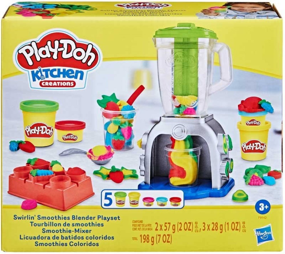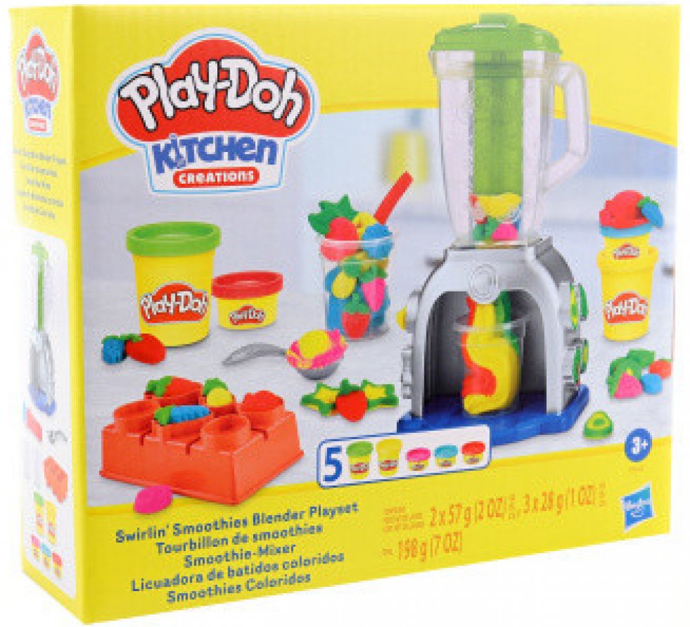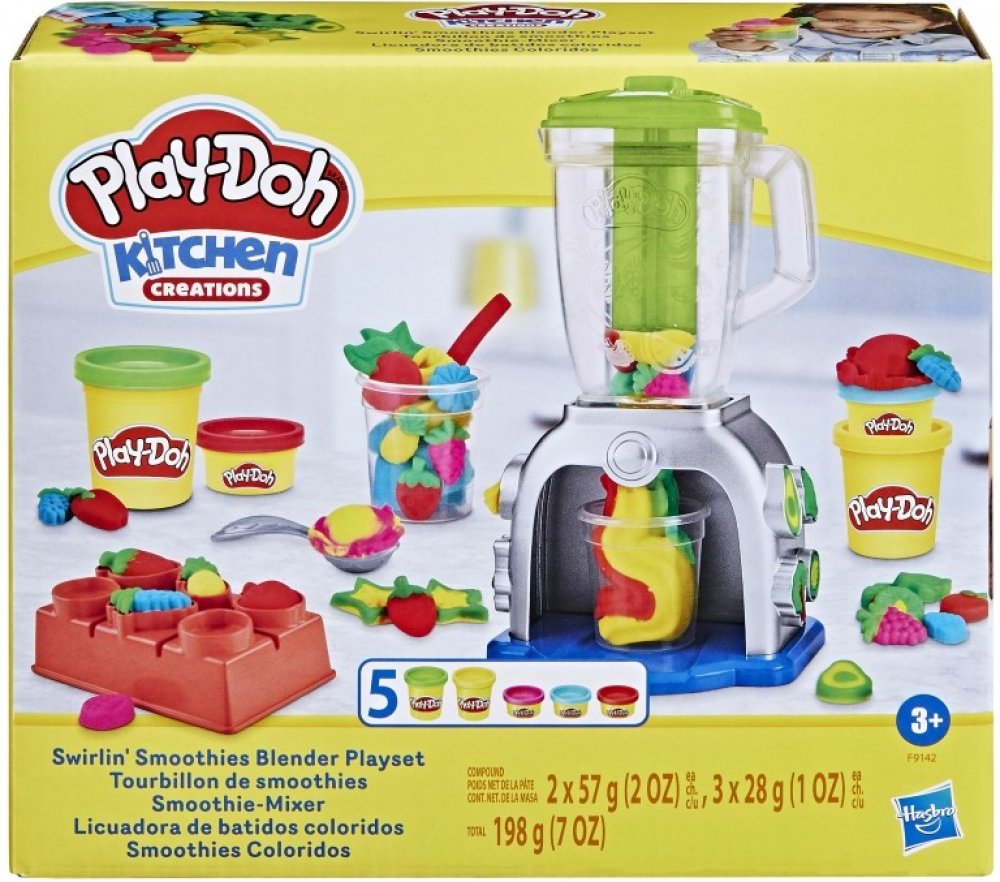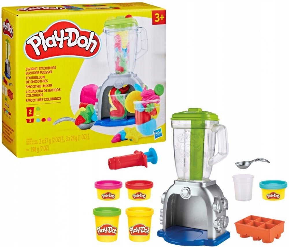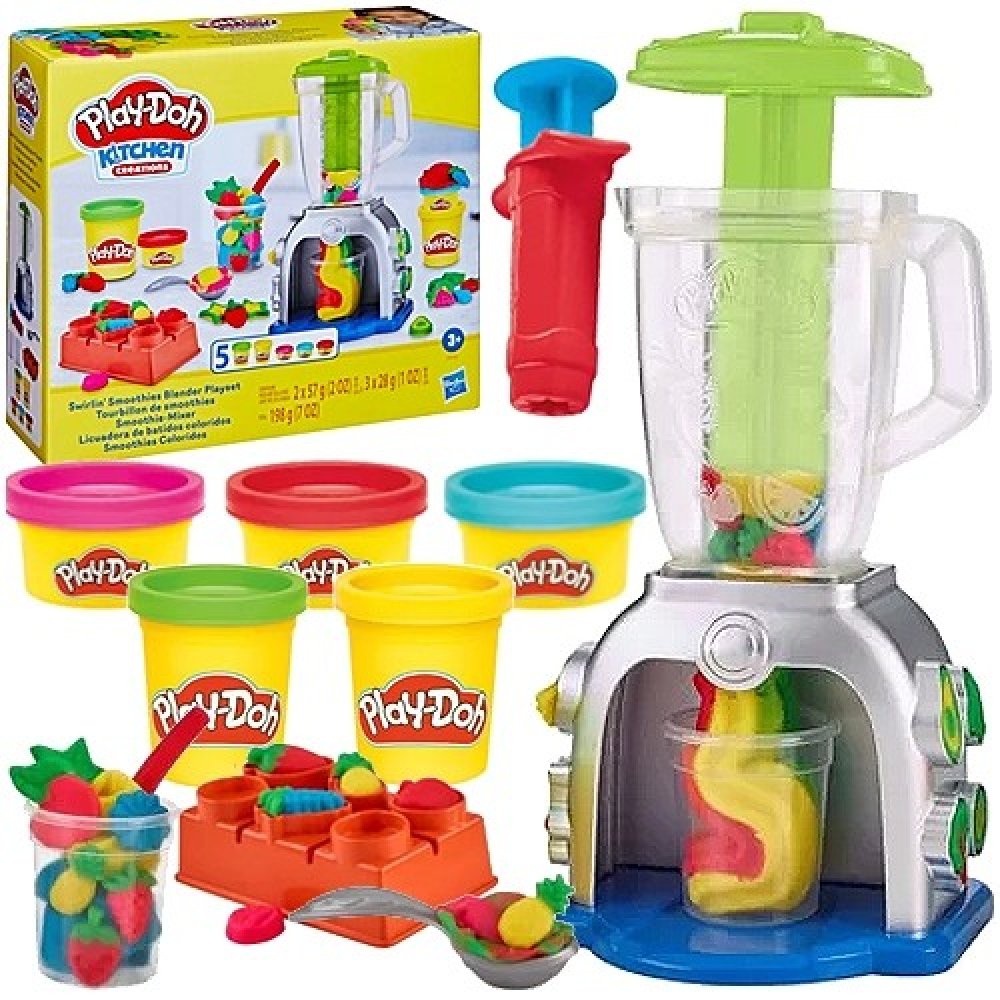Hasbro Play-Doh dětský kreativní set výroba smoothies. Součástí mixér, modelína a pracovní nástroje. Malý kuchař. Přichází čas ponořit se do povzbuzující zábavy plné fantazie se sadou Play-Doh Výroba smoothies! Tento set umožňuje malým milovníkům vaření a modelovací hmoty hrát si na kuchaře a vytvářet falešné smoothie - stačí vytvořit tvary ovoce a zeleniny z modelovací hmoty pomocí forem a pak je vložit do mixéru, abyste získali veselé barevné nápoje! A když přijde na ozdobení, fantazie nemá mezí! Růžová šlehačka z modelovací hmoty? Proč ne! Žluté jahody? Samozřejmě! Umělá modrá brokolice? Pojďte na to! Fantazie nezná hranic! Tento set je ideální způsob, jak kreativně trávit čas pro děti od 3 let. Play-Doh je bezpečná hnětací hmota. Vyrábí se na biologickém základu z přísad, které jsou schváleny také na výrobu potravin. Nemastí a nelepí ruce, nezanechává stopy. Děti mohou plastelínu různě tvarovat a míchat jednotlivé barvy dohromady. Práce s modelovací hmotou podporuje fantazii i zručnost. Rozměry balení (š v h): 20,5 x 18 x 6,5cm Materiál: modelína, plast Gramáž modelíny: 198g Balení: krabice Obsah balení: kelímek s modelínou 5x, malá lžička, kelímek, forma, vytlačovátko Cena je uvedena za 1 balení - sadu hračky Hračka je vhodná pro děti od 3 let