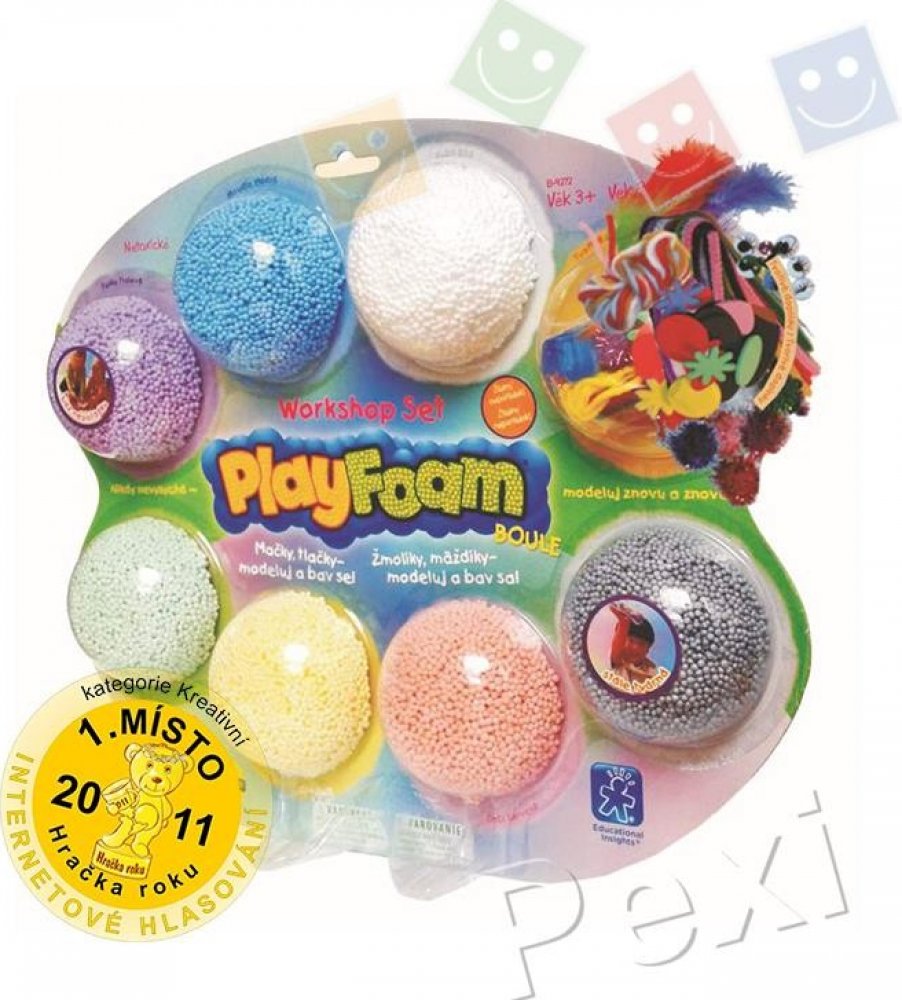Velká kreativní sada modelíny, která nešpiní, se sedmi barvami a mnoha veselými doplňky,vhodná od 3 let do 10 let. S doplňky budou výtvory jako živé! Pouze originál PlayFoam® se nelepí a nerozpadá při hraní. Sada získala 1.místo v internet.hlasování Hračka roku 2011.