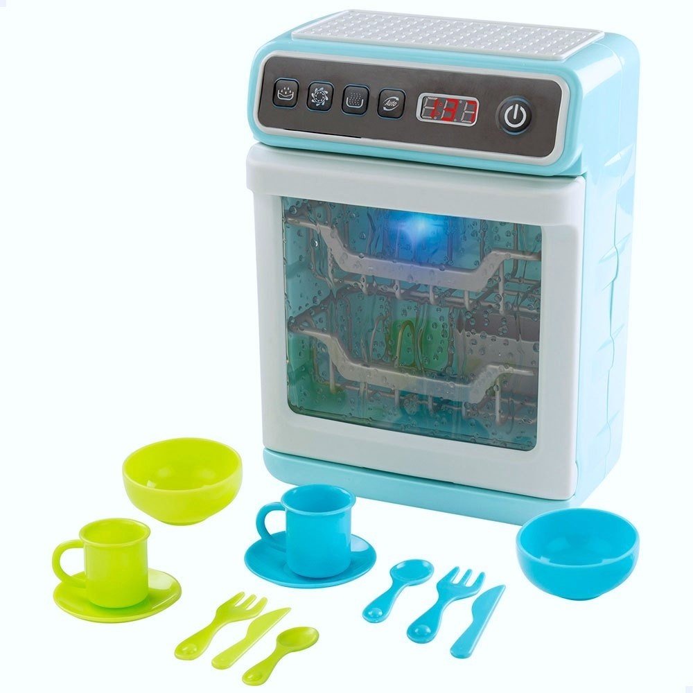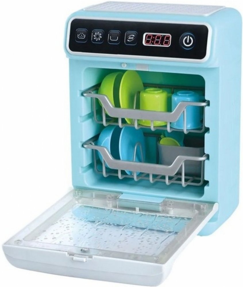 Naskládej nádobí do myčky, nastav ten správný mycí program a za chvíli máš umyto. Pak už stačí jen nádobí zase uklidit. Luxusní dětská myčka nádobí s dotykovým panelem by neměla chybět v žádné dětské kuchyňce. Tato myčka vydává reálné zvuky jako pravá a svítí. Stisknutím tlačítek v horní části myčku zapnete nebo vypnete. Její dveře se otevírají a zavírají. Sada obsahuje různé nádobí a kuchyňské náčiní. Programová tlačítka aktivují realistická světla a zvuky. Baterie: 2 x 1,5 V AA (pouze pro demo účely).