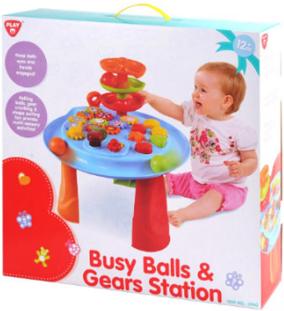 PLAYGO - Hrací stůl ozubená kolečka. Skutečně všestranné centrum pro aktivní hraní. Zaujme třípatrovým válečkovým dopravníkem, hrou s kladivem, šestidílným třídičem tvarů a ozubenou dráhou, která se skládá z 11 prvků. Díky 3 nohám, které jsou součástí balení, lze hračku snadno přeměnit na hrací stolek. Podrobnosti
