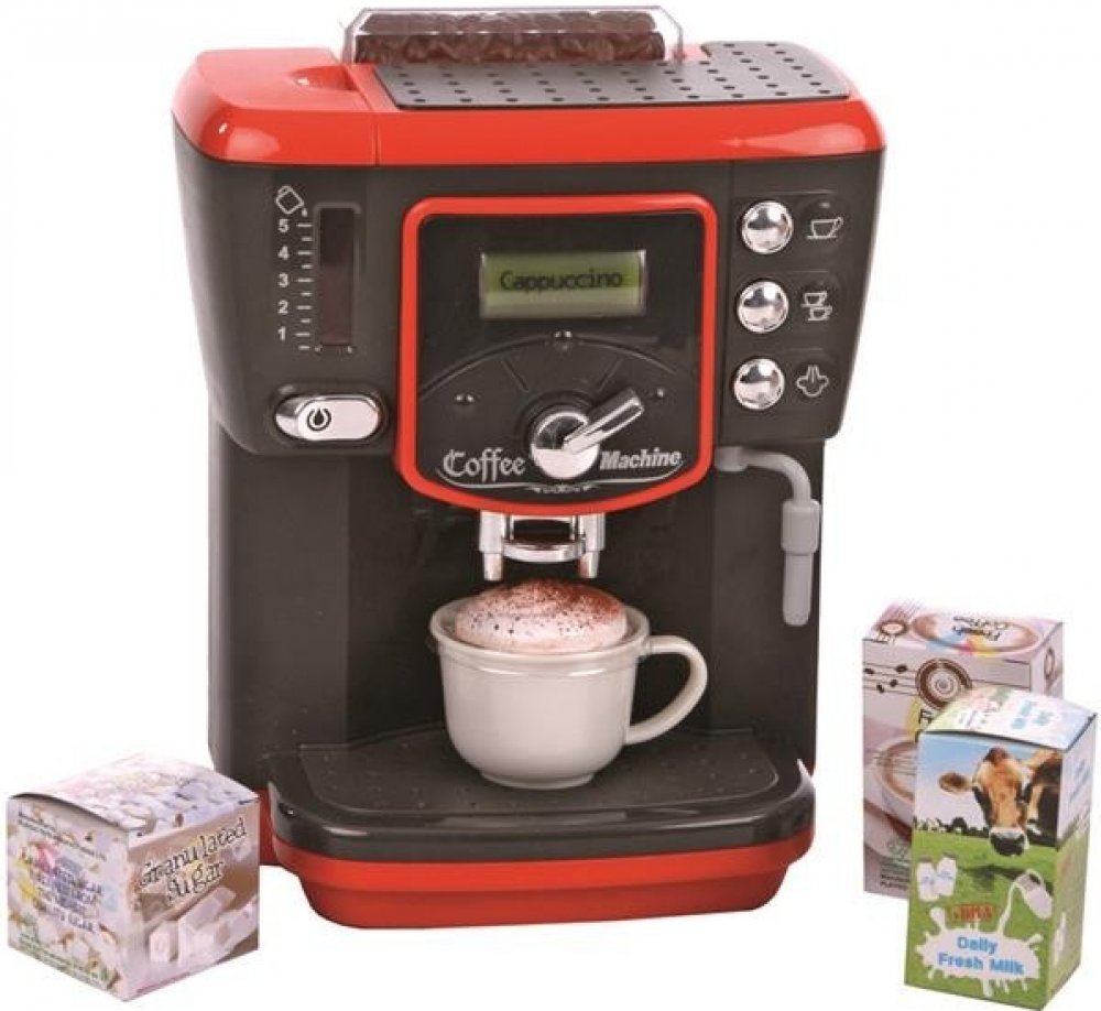 Popis:S realistickými funkcemi, včetně funkce průtoku vody, potřebné baterie 3xAA (včetně testovacích baterií), věk od 3 let, v krabiciAutomat se světlem a zvukem - nádržka na vodu pro 5 šálků kávy - 3 funkční klávesy - přepínač pro volbu typu kávy. Včetně šálku.expreso, presovač kávovar DE LUXE s realistickými funkcemi , na baterie-23 x 20 x 14 cm- zvuk přípravy kávy-zvuk páry a horké vody-zvuk mletí kávových zrn-osvětlení -přepínání na Mocchiato, Latte, Capuucino-obsahuje falešné zrna kávy-ukazatel množství vody-plnění vodou-vypouštění vody-doplňky cukr, mléko a kávaVLOŽTE FALEŠNÁ KÁVOVÁ ZRNA....DO NÁLEVKY NALIJTE VODU, CCA 1-2 ŠÁLKY. PŘEPNĚTE SPÍNAČ VLEVO A VODA ZAČNE VYTÉKAT. PŘEPNĚTE SPÍNAČ VPRAVO VODA VYTÉKAT PŘESTANE. K DISPOZICI JSOU 3 DRUHY KÁVOVÝCH ZRN, MACCHIATO, LATTE, CAPUCCINO. OTÁČENÍM PŘEDNÍHO PŘEPÍNAČE SI MOHOU DĚTI VYBRAT SVŮJ OBLÍBENÝ DRUH KÁVY A PŘIPRAVIT FALEŠNOU KÁVU :-) PRVNÍ TLAČÍTKO - ZVUK MLETÍ KÁVOVÝCH ZRN, ZVUK PLNĚNÍ VODOU NEBO ZVUK VYPOUŠTĚNÍ VODYDRUHÉ TLAČÍTKO -ZVUK MLETÍ KÁVOVÝCH ZRN, ZVUK PLNĚNÍ VODOU NEBO ZVUK VYPOUŠTĚNÍ VODY - DÉLKA PŘEHRÁVANÉHO ZVUKU JE DELŠÍ, NEŽ U PRVNÍHO TLAČÍTKATŘETÍ TLAČÍTKO - KÁVOVAR PŘEHRAJE ZVLÁŠTN ZVUKOVÉ EFEKTY FALEŠNÉ HORKÉ PÁRY A VODY