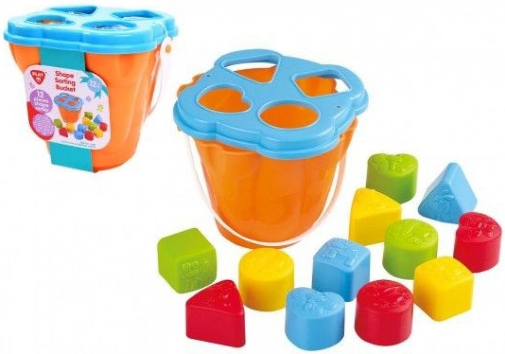Vhodné pro děti od 12 měsíců Kbelíček plný kostek různých tvarů (12 ks). Na kbelíčku najdete víčko s otvory, do kterých musí děti zasun...