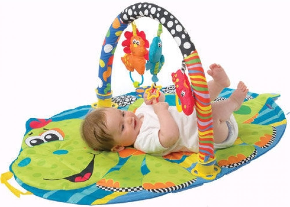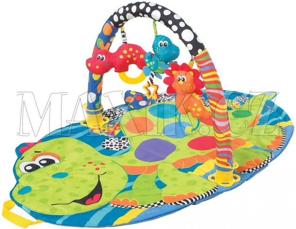 Veselý zelený dinosaurus, který tvoří tvar podložky má na sobě barevné puntíky a zaujme dítě na první pohled. Součástí podložky jsou i černobílé motivy, které jsou vyvinuta očními specialisty. Hlavní funkcí této kombinace barev je rozvoj zraku miminka především v jeho prvních třech měsících, kdy ještě nerozlišuje barvy.