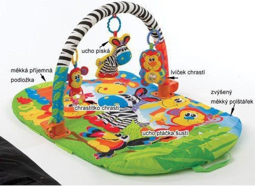 Pestrobarevná podložka nabízí miminku poutavý a měkoučký povrch pro hraní na zemi. Více jak 45 cm široká a 80 cm dlouhá podložka je plná barev a aktivit pro rozvoj dětských smyslů.