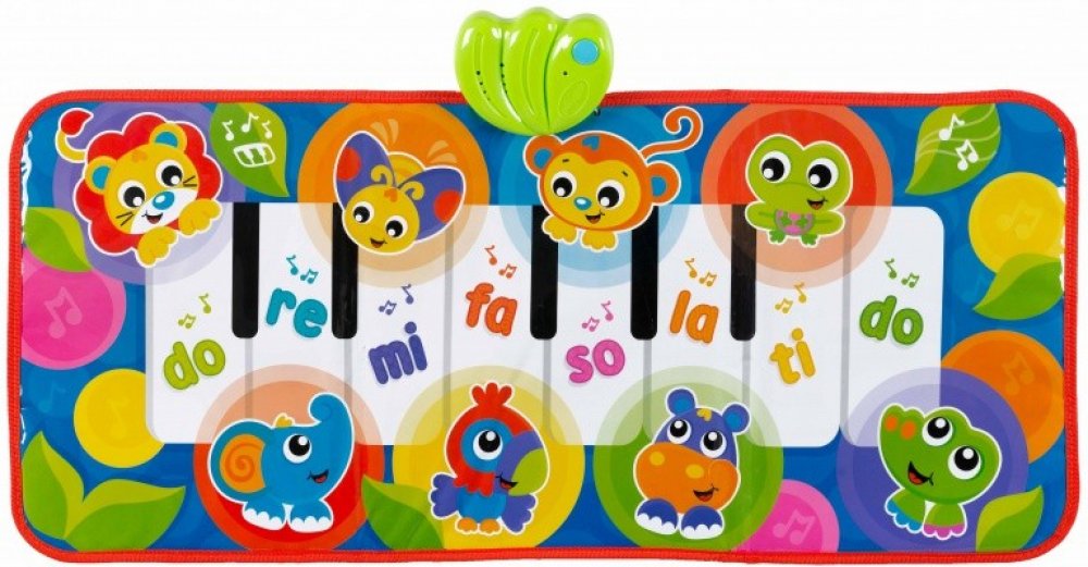 Podlahové piano obsahuje mnoho zvuků a možností jak si s ním hrát. Pomocí listů nahoře vpravo a vlevo volíte, zda po stisku na klávesy dítě uslyší pouze tón ze stupnice a nebo zda se mu pustí veselá písnička.