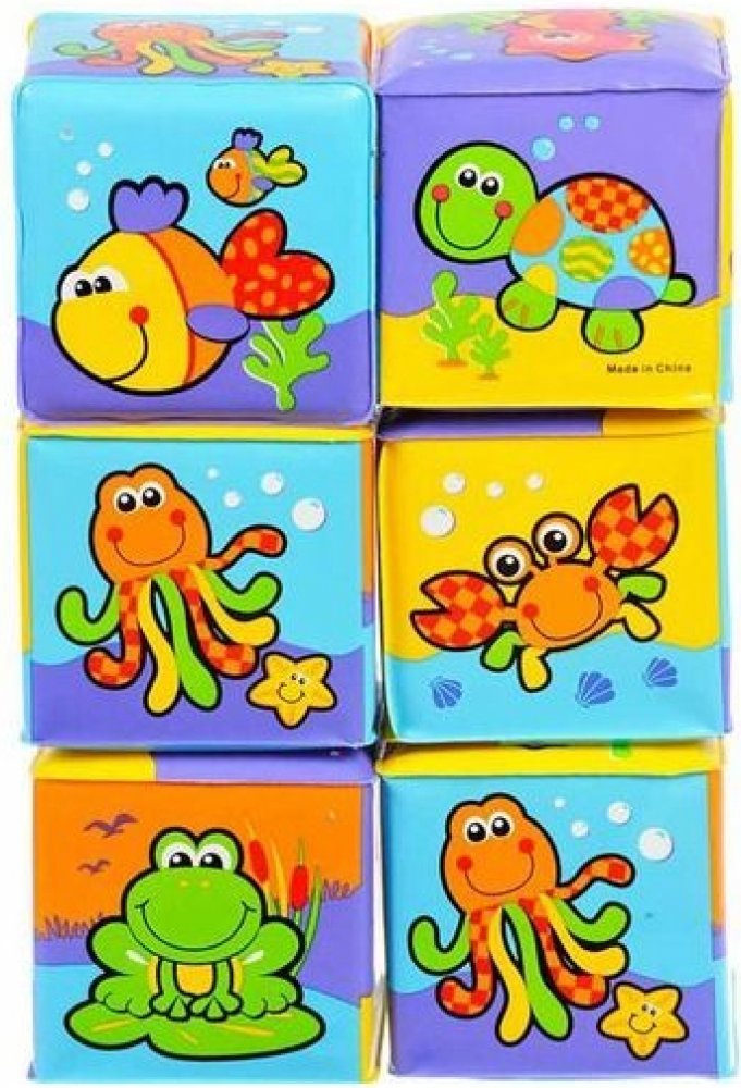 Měkké pěnové kostky - 6kusů, potištěné ze všech stran obrázky vodních živočichů.