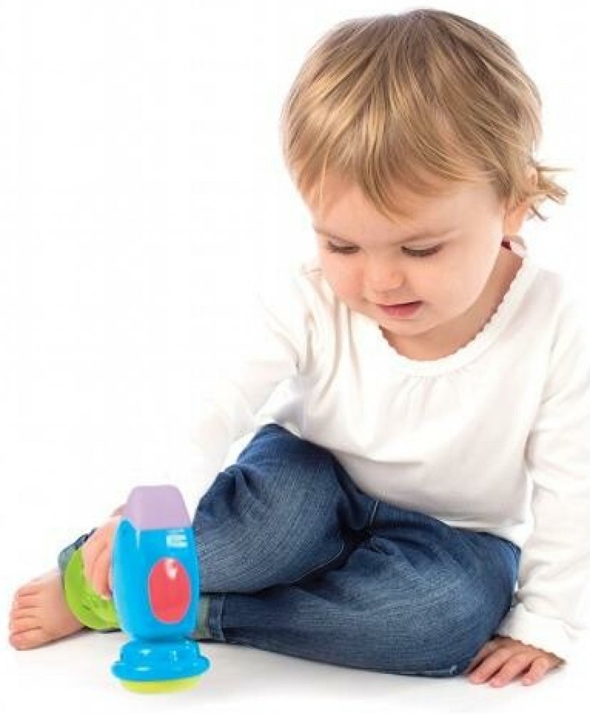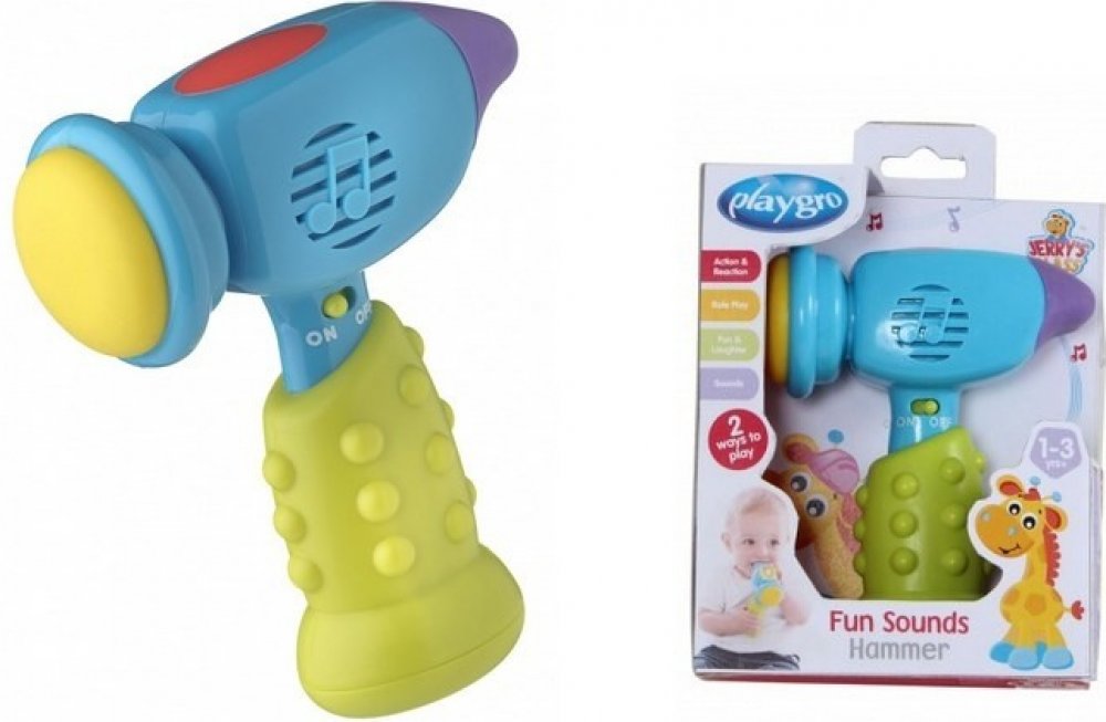 Malá hudební hračka, která je oblíbená u všech malých dětí. Pokud dítě kladívkem bouchne o zem, uslyší jeden ze čtyř legračních zvuků a rozbliká se světýlko. Zvuk se dá vypnout / zapnout. Hračka obsahuje 2 x 1,5 AAA baterie.