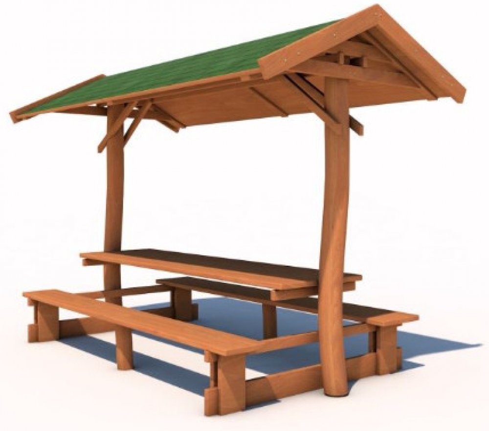 Masivní menší altán vyrobený z kvalitního a odolného akátového dřeva, vhodný pro veřejné prostory například k cyklostezkám, do parků zahrad MŠ i základních škol, uplatnění jistě najde i v soukromých zahradách. Dodáváme natřené a bez kotvení (lze dokoupit).