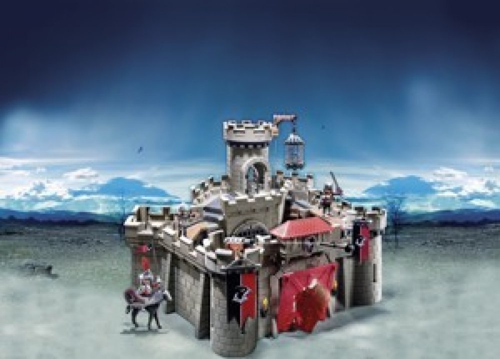 Rytíři řádu Sokola útočí, ale musí také myslet na obranu svého hradu. Hrad chrání padací most, dobyvatelé se mohou chytit do různých pastí. Na hradě důmyslné překážky - hradní brána, padací most, past, vězení a spousta zbraní. Jeřábem se otevře skrýš s pokladem.