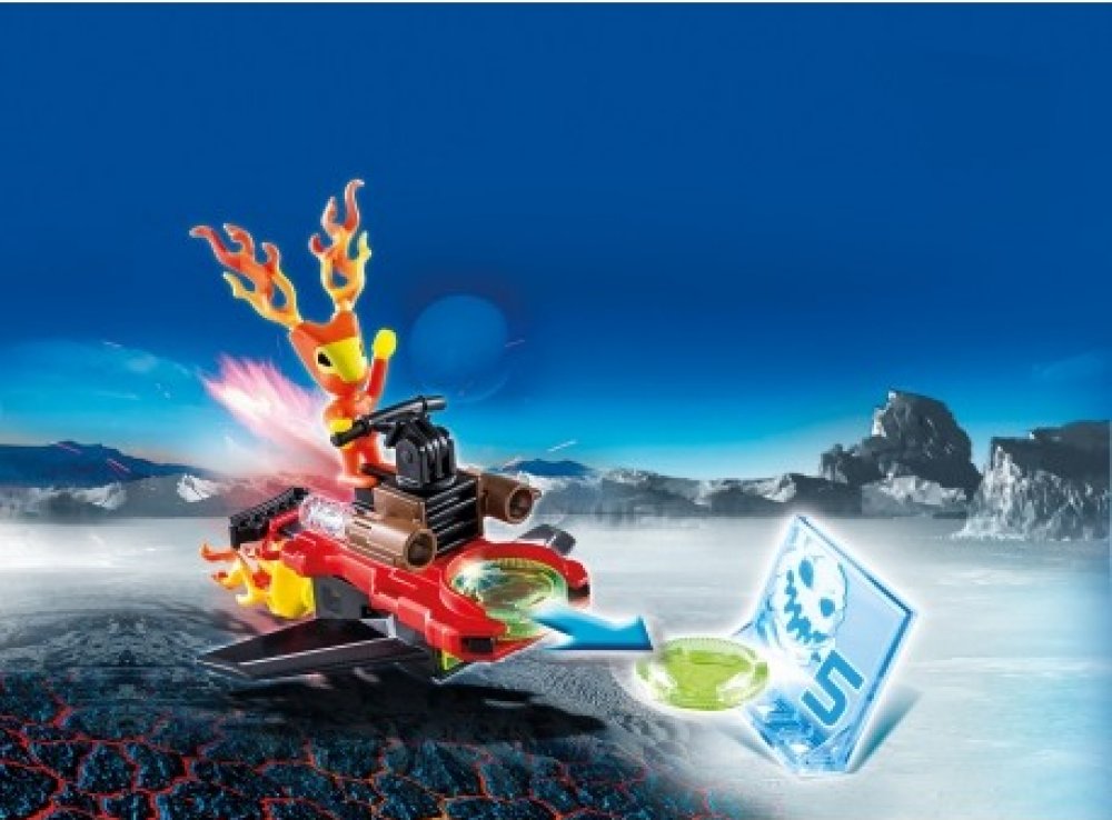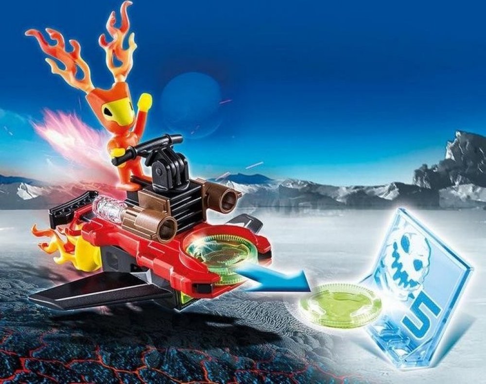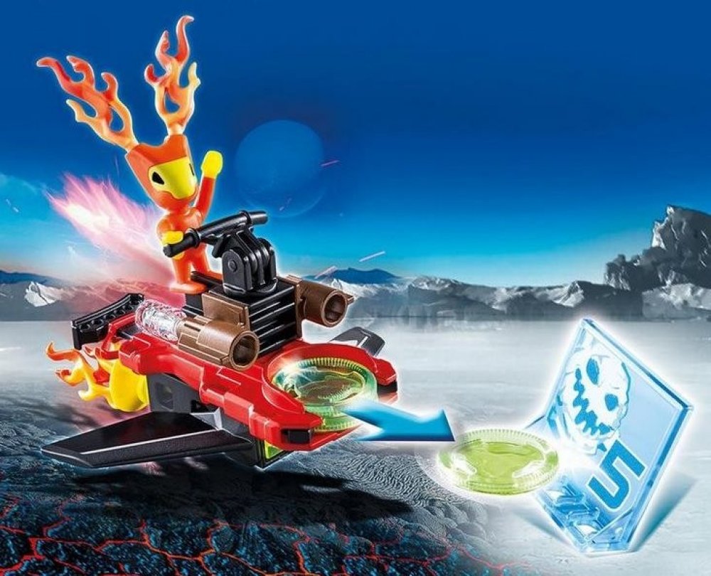 Bojovník ledu Sparky na kluzáku se třemi vystřelovacími disky a 5ti bodovým terčem. Kluzák lze zkombinovat s kluzáky ostatních bojovníků (Frosty, Icebot a Firebot).