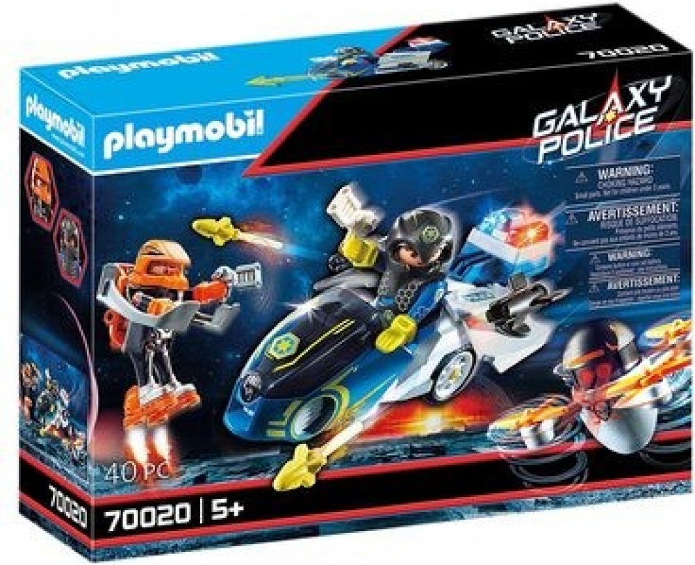 Na zemi nebo ve vzduchu, nikdo není rychlejší než vesmírný policista se speciální motorkou. Vesmírný pirát se snaží uniknout pomocí tryskových bot, ale policejní motorka má vyklápěcí křídla a zločinec nemá šanci uniknout.motorka s vyklápěcími křídly a funkčními střelamifunkční blikající světlo motorky (baterie jsou součástí setusoučástí setu je kosmický pirát s tryskovým batohem a dronem pro napínavé honičky.obsahuje 2 figurky: vesmírný policista a vesmírný pirátrozměry motorky: 15 x 10,5 x 8 cm Vhodné pro děti od 5 let. Téma:® Galaxy Police 70020 - Vesmír - policejní kolo Galaxy Ať už na silnici, nebo ve vzduchu, nikdo není rychlejší než vesmírný policista se svým policejním kolem Galaxy. Ani se svým moderním tryskovým batohem a tryskovými botami nemá Vesmírný pirát šanci uniknout. Když nastartuje trysky a vznese se do vzduchu, policista jednoduše rozloží křídla své motorky a letí za ním. "Já tě dostanu!" křičí policista z Galaxie. Vesmírný pirát pozor! Hrací sada obsahuje dvě figurky , policejní motorku s blikajícími světly a dva raketové granáty, dále batoh s tryskami, boty s tryskami a helmu pro vesmírného piráta. Policejní motorku lze rozkládáním křídel přepnout z režimu jízdy do režimu létání. s funkčními blikajícími světly (baterie jsou součástí balení), rozkládacími křídly a vystřelovacími náboji. Včetně protistrany vybavené tryskovým batohem a dronem pro vzrušující honičky! Rozměry: 15 x 10,5 x 8 cm (DxHxV) Upozornění: Pozor Nevhodné pro děti mladší 36 měsíců Pozor! Obsahuje malé části, které mohou být spolknuty. Nebezpečí udušení. Galaxy Polizei - Galaxy Polizei-Motorrad 70020 Hrací sada obsahuje dvě figurky , policejní motorku s blikajícími světly a dva raketové projektily, dále tryskový batoh, tryskové boty a helmu pro vesmírného piráta. Policejní motorku lze rozkládáním křídel přepnout z režimu jízdy do režimu létání. důležité poznámky - Pozor! Nevhodné pro děti do 3 let, protože může dojít ke spolknutí malých částí. Nebezpečí udušení!