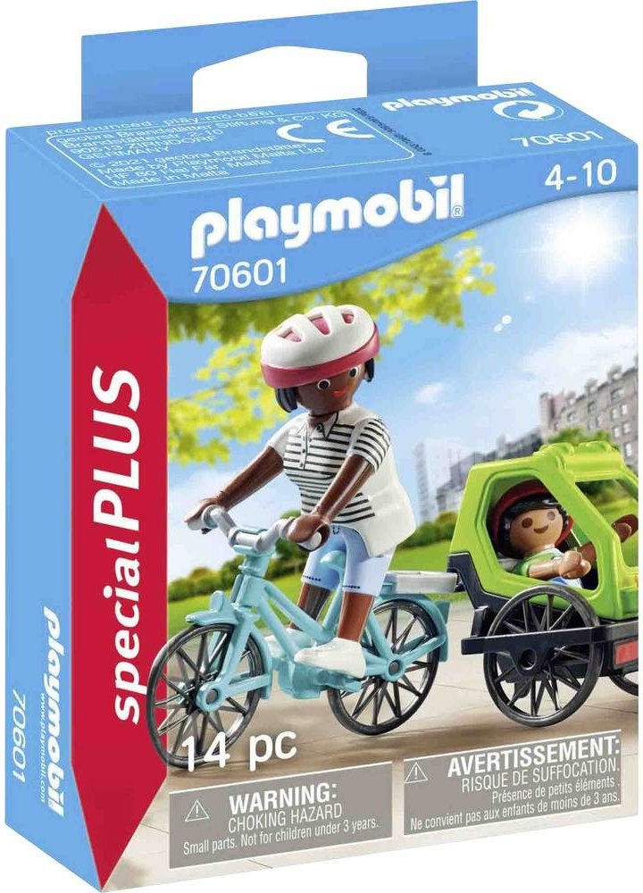 Máma si samozřejmě nasadila přilbu a syn pohodlně sedí v přívěsu na kolo. Figurky PLAYMOBIL Special Plus jsou ideálním suvenýrem. Skvělá zábava sbírat, hrát si a rozdávat! balení obsahuje:1x figurku a další doplňky
