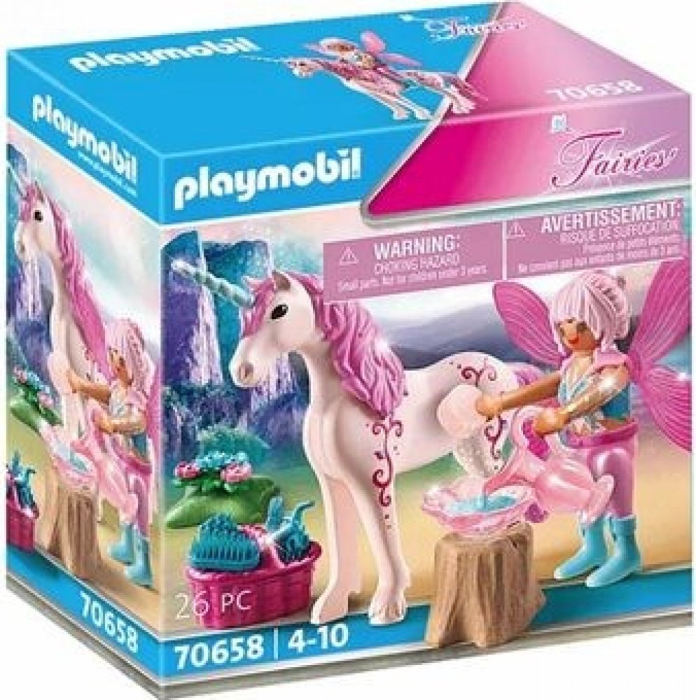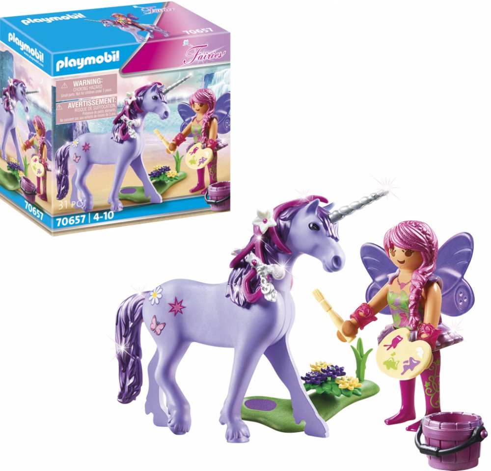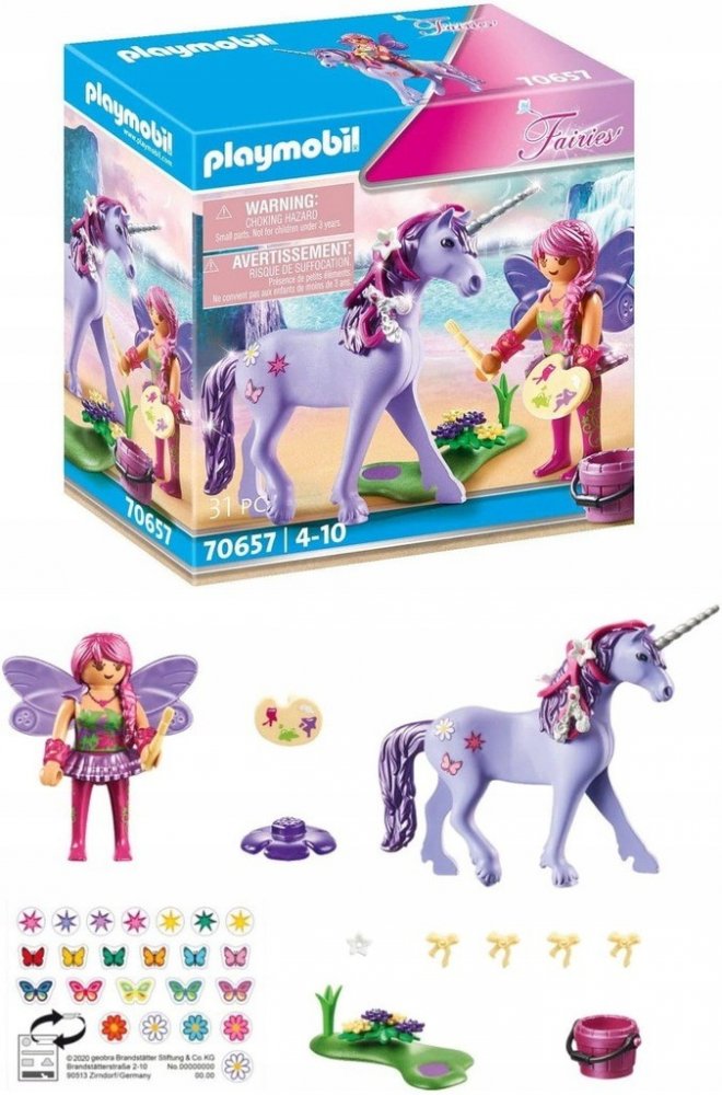 Víla zdobitelka se specializuje na krásu. Láskyplně zdobí hřívu svého jednorožce květinami a drahokamy. Svou barevnou paletou maluje na jednorožce barevné květiny. Vypadá to opravdu nádherně! Stavebnice PLAYMOBIL nabízí plno zábavy všem svým pohádkovým kamarádům. balení obsahuje: 1x figurku víly a 1x figurku jednorožce
