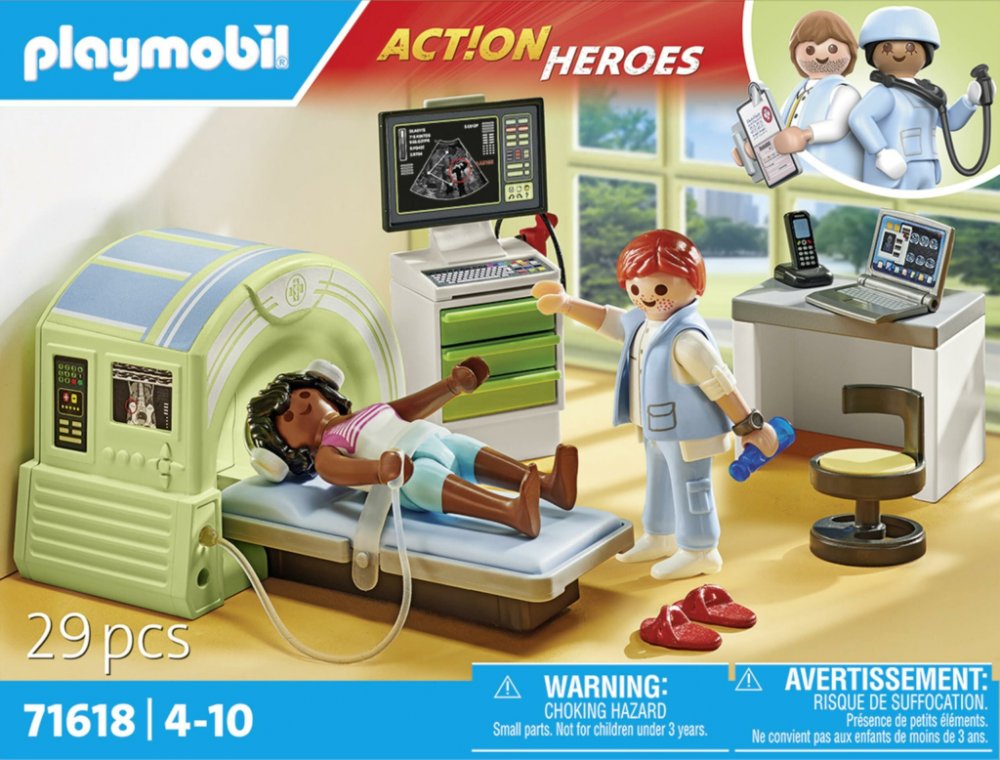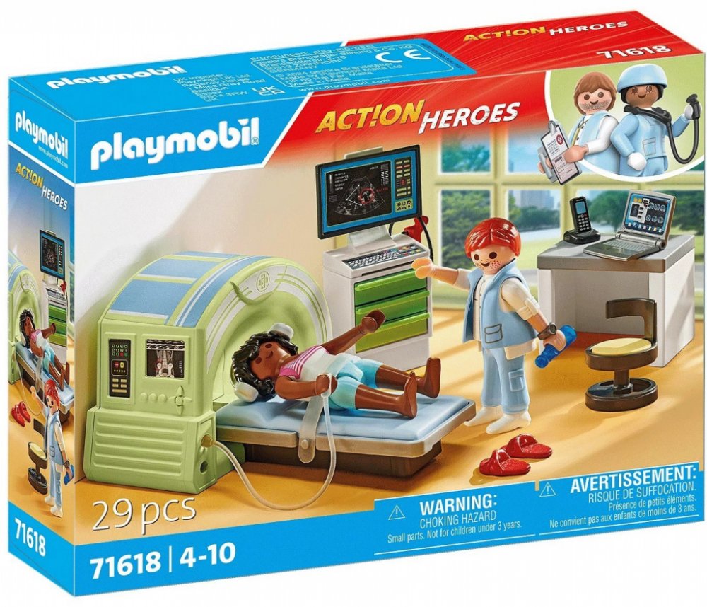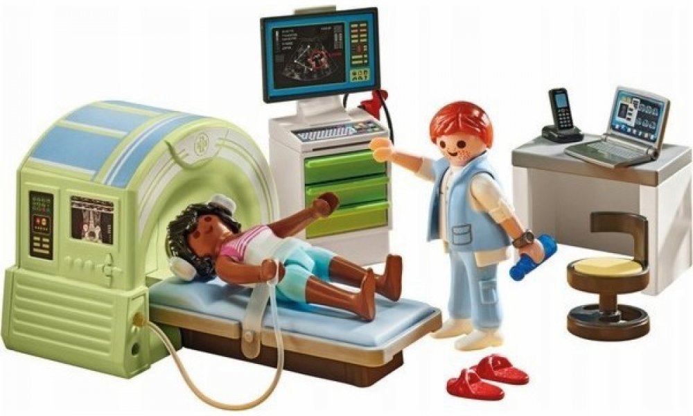 Ordinace : lůžko s tunelem pro pacienty. Rentgen a paní doktorka s vybavením. Kompletní snímek se jí uloží do počítače a poté může pacient odcházet.