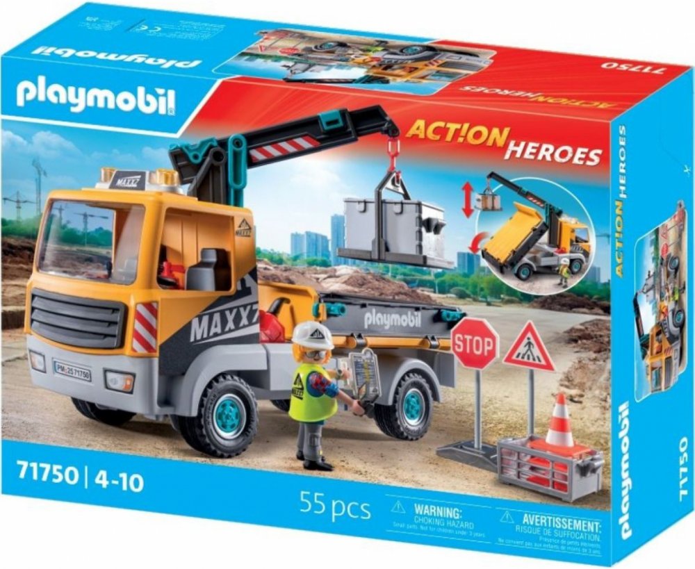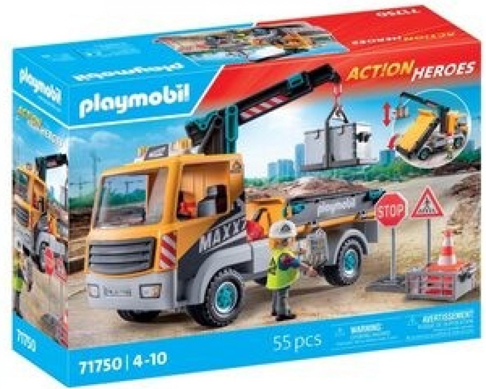 Jeho velkou ložnou plochu lze vyklopit nahoru a dolů a sklopit boční panely. Nepostradatelný na každé stavbě: stavební vozík PLAYMOBIL s jeřábem!
