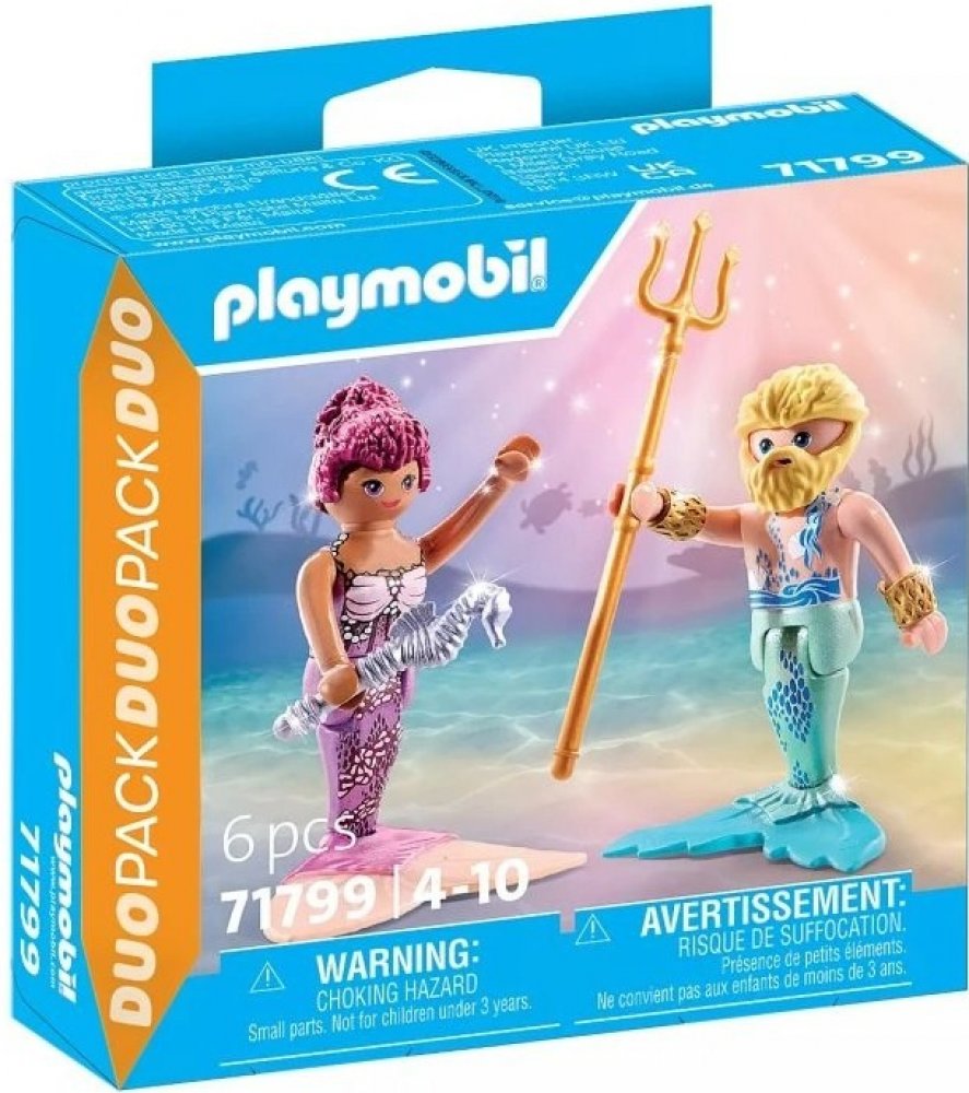 PLAYMOBIL DuoPack Mořská panna a Mořský muž. Společně mořská panna s žezlem mořského koníka a mořský muž s trojzubcem překročí oceán a zažijí kouzelná dobrodružství.
