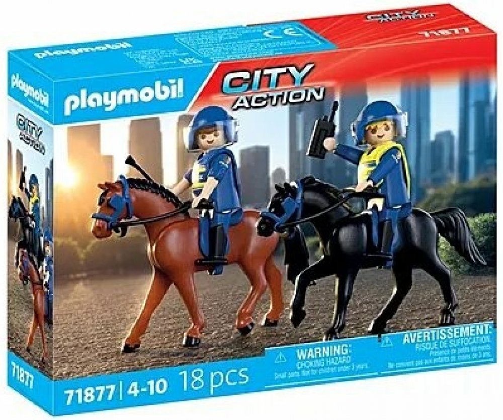 Rozměr balení cca 19 x 14 x 5 cm (D x V x Š).Doprovázejte naše policisty na jejich dvou koních městskou džunglí a pomozte jim udržovat pořádek. Mají širokou škálu policejního vybavení pro společné mise.Projeďte se městem s policejní jednotkou PLAYMOBIL! Policistka a policista na svých věrných koních hlídkují ulicemi, připraveni k akci s vysílačkou, baterkou a odnímatelnými vestami. Koně jsou plně vybaveni sedly a ohlávkami a policisté nosí helmy s hledími, které se vyklápějí pro rychlé povely.