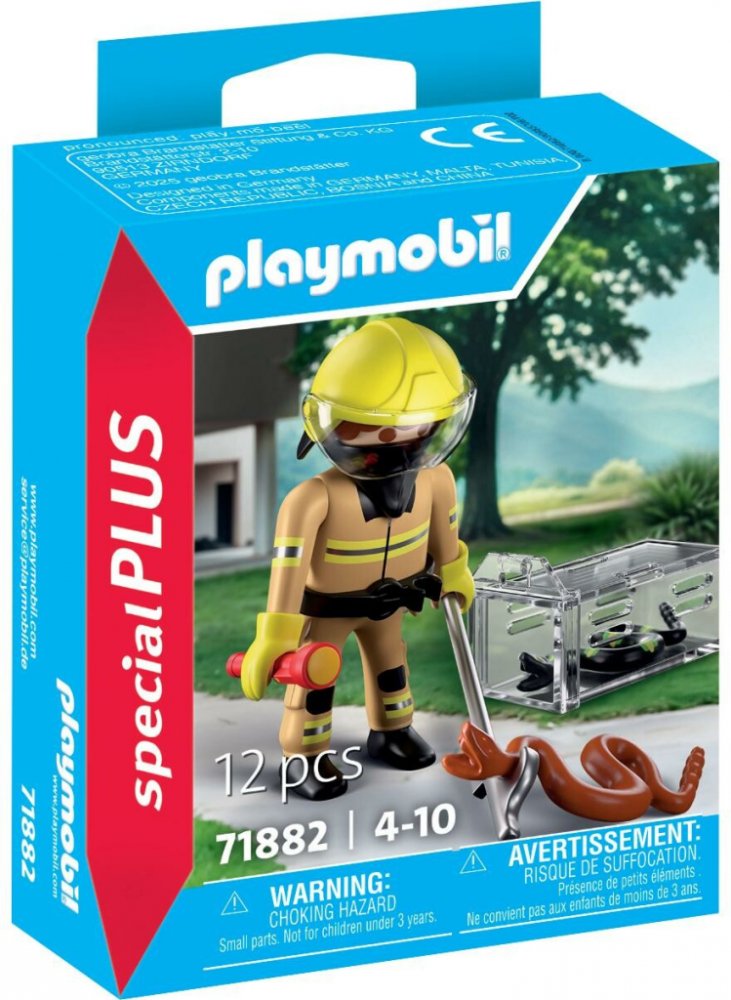 Co to bylo, co tam šustilo? Něco se právě schovalo v podrostu. Naštěstí je hasič se svým vybavením na záchranu hadů na místě bleskově. Opatrně chytí oba hady pomocí látky a háku a přenese je do bezpečí v přepravním boxu. Had na dohled – záchranná mise v džungli! Nebezpečí v podrostu! Ale nebojte se – hasič PLAYMOBIL je okamžitě na místě! Svým speciálním hákem opatrně chytí oba hady a bezpečně je umístí do průhledného přepravního boxu. Jeho výklopný hledí poskytuje perfektní přehled – i pro šupinovitá překvapení! Tato realisticky navržená sada potěší dobrodruhy milující zvířata vzrušujícími funkcemi a milými detaily – ideální pro nápadité záchrany zvířat a akční herní příběhy s hasičským sborem. Obsahuje: 1 figurku PLAYMOBIL, 2 hady, hák a přepravní box.
