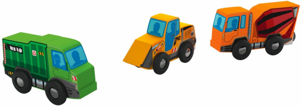 Playtive Dřevěná autíčka 3dílná sada Z evropského bukového dřeva Všechna vozidla jsou s magnetickými spojkami Kombinovatelná s dalšími železničními a vozidlovými sadami od Playtive Kompatibilní s běžnými sadami dřevěných kolejnic a vozovek Doporučený věk: od 2 let 3dílná sada Záchranářská vozidla Policejní vůz, sanitka a hasičský vůz Stavební vozidla Míchačka na beton, sklápěč a kolový nakladač Zemědělská vozidla Traktor, kombajn a unimog Závodní auta Závodní auta v modré, stříbrné a červené barvě Přepravní vozidla Vrtulník, autobus a taxík Hmotnost Záchranářská vozidla: cca 142 g Stavební vozidla: cca 163 g Zemědělská vozidla: cca 144 g Závodní auta: cca 115 g Přepravní vozidla: cca 132 g
