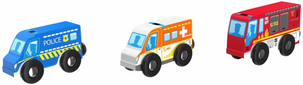 Playtive Dřevěná autíčka 3dílná sada Z evropského bukového dřeva Všechna vozidla jsou s magnetickými spojkami Kombinovatelná s dalšími železničními a vozidlovými sadami od Playtive Kompatibilní s běžnými sadami dřevěných kolejnic a vozovek Doporučený věk: od 2 let 3dílná sada Záchranářská vozidla Policejní vůz, sanitka a hasičský vůz Stavební vozidla Míchačka na beton, sklápěč a kolový nak...