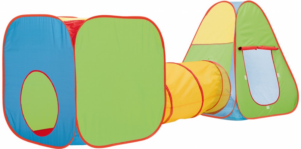 Playtive® Dětský stan s tunelem Ideální místo pro hraní a odpočinek Rychlé postavení díky funkci rychlého rozložení „Pop-up“ Kostka; týpí a spojovací tunel – použitelné také jednotlivě Kostka se 2 otvory Týpí s prodyšnou síťovou vložkou, 2 otvory a rolovacími dveřmi Z odolné polyesterové tkaniny Poutka a pásky na připevnění tunelu Omyvatelný Včetně všitého návodu k použití Doporučený věk: pro děti od 18 měsíců 3dílná sada Materiál Polyester, ocel Rozměry Postavený: cca 280 x 80 x 100 cm (Š x V x H) Kostka: cca 80 x 80 x 80 cm Týpí: cca 85 x 85 x 100 cm Tunel : cca 118 x Ø 46 cm Hmotnost cca 1,565 kg