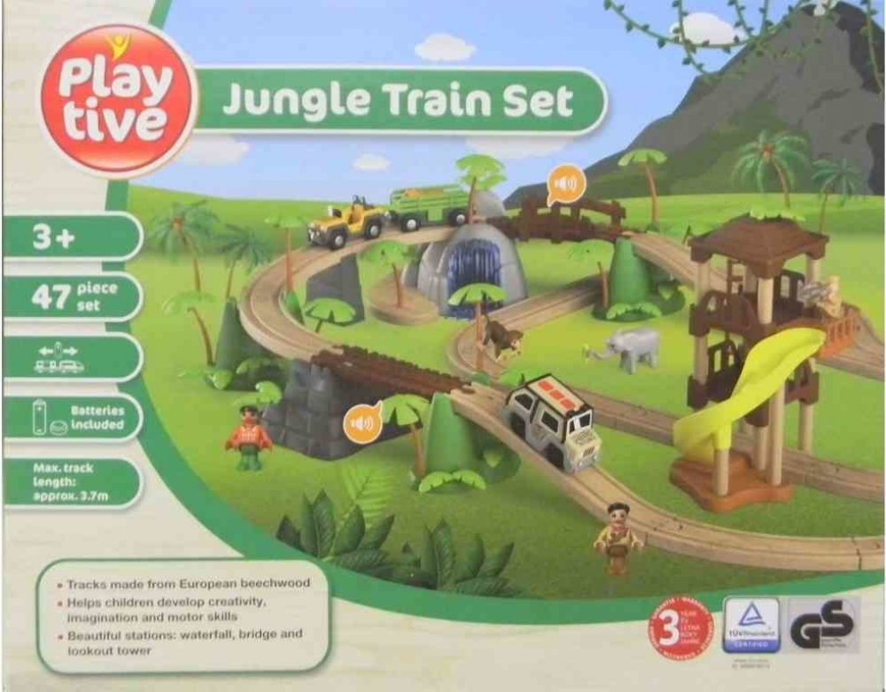 Kolejnice z evropského bukového dřeva Podporuje kreativitu, fantazii a jemnou motoriku Všechna vozidla jsou s magnetickými spojkami Rozsáhlé příslušenství pro mnoho kreativních variant sestavení Kombinovatelné s dalšími železničními a vozidlovými soupravami od Playtive Kompatibilní s běžnými sadami dutých kolejnic a dřevěných drah Doporučený věk: od 3 let Statek Láskyplně vytvořené stanice: kurník se zvukovou kolejnicí, větrný mlýn, železniční přejezd a mostní prvek Kravín a stáj pro koně s prvky plotu Včetně mlátičky, traktoru a přívěsu s nákladem Samojízdný traktor s funkcí jízdy vpřed 56dílná sada Džungle S láskou navržené stanice: vodopád, most a vyhlídková věž Včetně terénního vozu s přívěsem, 3 figurek a 3 zvířat Samočinně jezdící safari truck s funkcí jízdy dopředu a dozadu 47dílná sada Rozměry Statek: max. délka dráhy: cca 3,1 m Džungle: max. délka dráhy: cca 3,7 m Hmotnost cca 2 kg