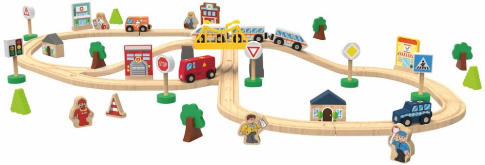 Podporuje kreativitu, fantazii a jemnou motorikuVšechna vozidla jsou s magnetickými spojkamiRozsáhlé příslušenství pro mnoho kreativních variant sestaveníKombinovatelné s dalšími železničními a vozidlovými sadami od PlaytiveKompatibilní s běžnými dřevěnými kolejnicemiDoporučený věk: od 2 let MěstoVšechny budovy, vozidla, dopravní značky, stromy a figurky jsou z vysoce kvalitního, pravého dřevaVčetně 3dílného rychlíku a 3 pohotovostních vozidel (policejní auto, požárnické auto a sanitka)67dílná sada StatekVšechny budovy, vozidla, stromy , zvířata a figurky jsou z vysoce kvalitního, pravého dřevaVčetně lokomotivy s vagónem, traktoru s přívěsem, poštovního vozu a auta69dílná sadaRozměryMěsto: cca 3,6 mSatek: cca 4 mHmotnostcca 1,8 kg Podporuje kreativitu, fantazii a jemnou motoriku Všechna vozidla jsou vybavena magnetickými spojkami Rozsáhlé příslušenství pro mnoho kreativních variant sestavení Kolejnice z evropského bukového dřeva Kompatibilní s běžnými dřevěnými kolejnicemi Doporučený věk: od 2 let Varianta město Všechny budovy, vozidla, dopravní značky, stromy a figurky jsou z vysoce kvalitního, pravého dřeva Včetně 3dílného rychlíku a 3 pohotovostních vozidel (policejní auto, hasičské auto a sanitka) 67dílná sada Varianta statek Všechny budovy, vozidla, stromy , zvířata a figurky jsou z vysoce kvalitního, pravého dřeva Včetně lokomotivy s vagónem, traktoru s přívěsem, poštovního vozu a auta Max. délka dráhy: cca 4 m 69dílná sada