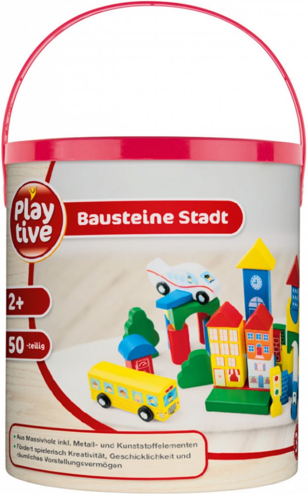Playtive® Dřevěná stavebnice Podporuje hravým způsobem kreativitu, zručnost a prostorovou představivost Kreativní zábava s množstvím variant k sestavení Město Z masivního dřeva včetně kovových a plastových prvků Doporučený věk: pro děti od 2 let 50dílná sada Barvy Stavební díly z masivního dřeva různých tvarů Doporučený věk: pro děti od 1 roku 80dílná sada Mix Pestré a vzorované stavební kameny z ...