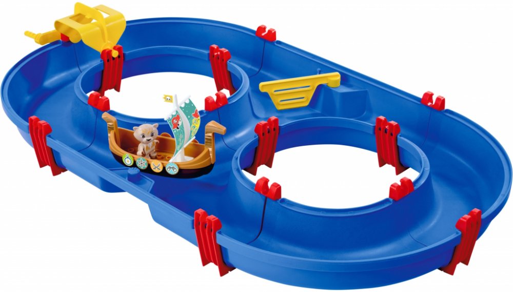 Playtive Vodní dráha Pirate's World Vlastnosti Pirátská sada v známých barvách AquaPlay. Včetně čerpadla, malé pohyblivé propusti, pirátské lodi s figurkou šavlozubé kočky Olivie, která mění barvu (při teplotě vody pod 10 °C se barva srsti změní z béžové na červenou). Vodní dráha je vyráběna v Německu a snadno se kombinuje s dalšími hrami a rozšířeními AquaPlay. Voděodolné spojovací spony bezpečně...