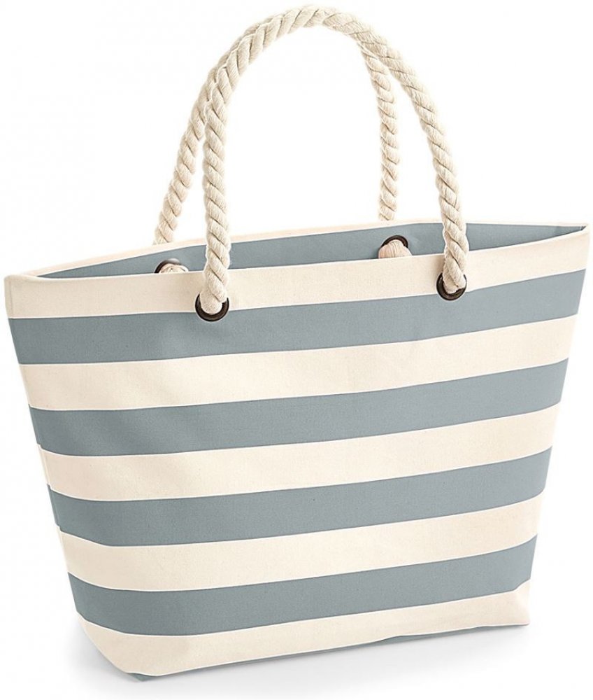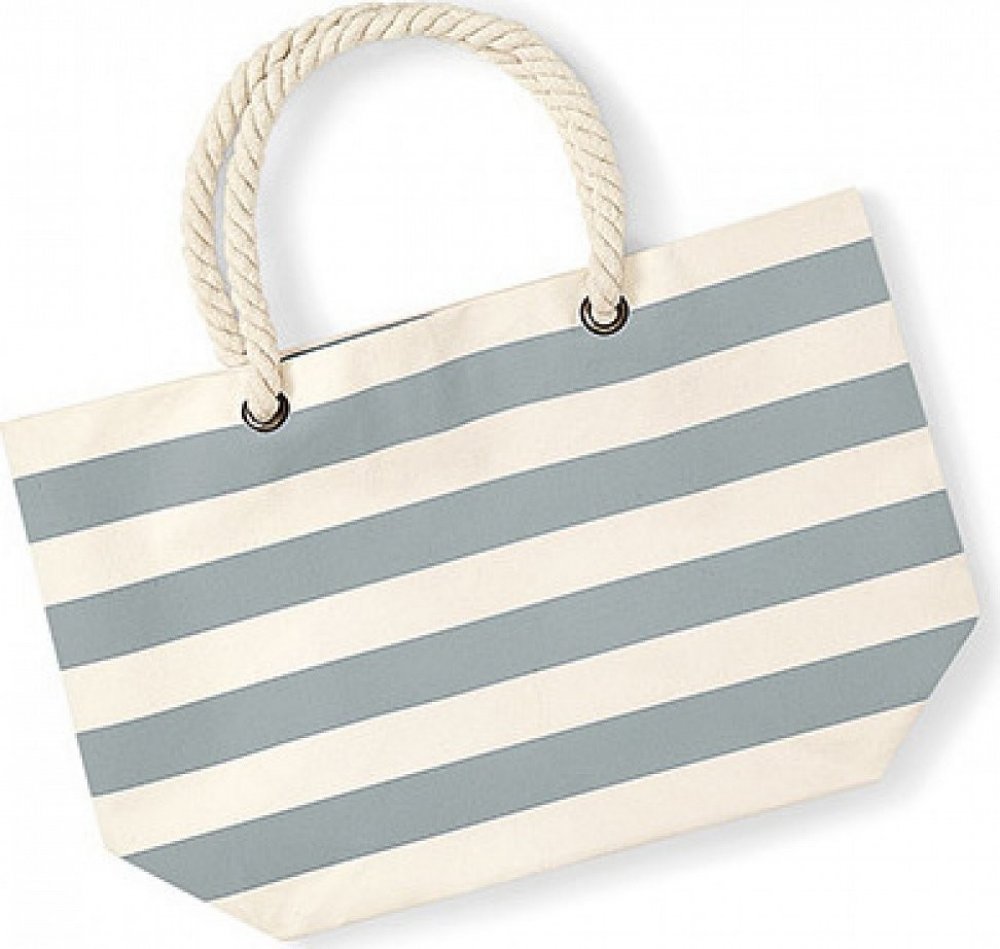Kvalitní plážová taška. Taška má tištěný pruhovaný design (námořní). Taška má pevnou robustní provazovou rukojeť s délkou popruhů 60 cm pro pohodlné nošení. Taška má vnitřní kapsu na zip vhodnou pro doklady... Objem tašky je 22 litrů, nelze prát.