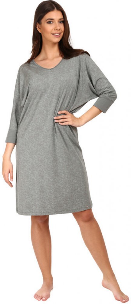 Velice pěkné dámské domácí šaty Pleas s 3/4 rukávkem v netopýřím střihu a výstřihem do "V". Šaty jsou vyrobené z velmi příjemného a jemného bavlněného úpletu v kombinaci s modalem pro maximální pohodlí. Šaty jsou zdobené decentním potiskem a vhodné na doma, ale také je lze využít jako noční košili, vyrábí se ve velikostech 38, 40, 42, 44, 46, 48 (S, M, L, XL, 2XL, 3XL), materiálové složení: 50% Bavlna a 45% Modal a 5% Elastan.