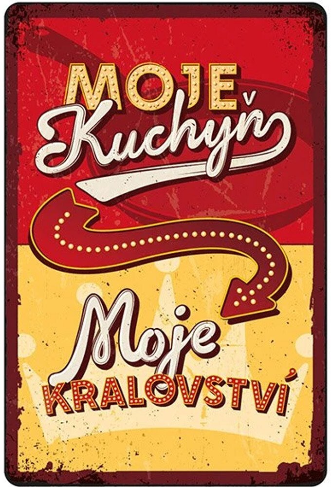 Kde vládne vařečka i koruna? No přece ve vaší kuchyni. Tahle cedule to světu oznámí jasně a stylově. Pokud je kuchyň vaším magickým územím, kde se rodí vůně, chutě a občas i drobné kulinářské experimenty s nejistým výsledkem, pak si zasloužíte dekoraci, která tuto vládu oficiálně stvrdí. Retro plechová cedule „Moje kuchyň – Moje království“ je přesně tím kouskem, který dá každému hned u dveří jasně najevo, kdo tu drží žezlo… tedy vařečku. Vyrobena z kvalitního plechu zvládne cedule všechno, co na ni kuchyň hodí – páru z hrnce, zvonění pokliček i dramatické „Kdo snědl mou čokoládu?!“. Rozměr 20 × 30 × 0,3 cm je ideální pro dveře, zástěnu nebo zeď, kde její retro šmrnc krásně vynikne. Není příliš malá, aby se ztratila, ale zároveň nepůsobí rušivě – prostě přesně tak akorát, aby působila dojmem, že sem patří odjakživa. Retro design ji předurčuje jako perfektní dárek pro všechny, kdo vaří s láskou, nadhledem a občas i dramatickým otočením pánve. Ať ji darujete mamince, kamarádce, babičce nebo sobě samotné, vždycky vykouzlí úsměv a zlepší náladu i v kuchyni, kde zrovna explodovalo těsto. A pokud máte doma někoho, kdo do vašeho království rád strká nos (a prsty do mísy s těstem), můžete si být jistí, že tahle cedulka jim to dá nenápadně, ale naprosto jasně najevo. Tak co, připraveni povýšit svou kuchyň na oficiální království? Vaše koruna už čeká.
