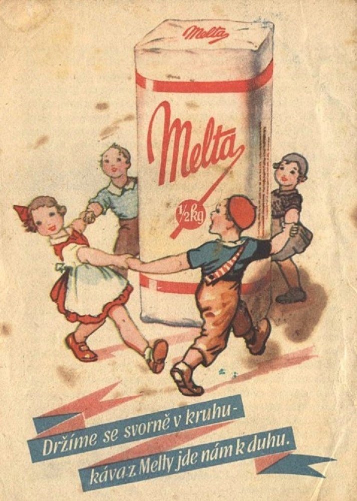 Text: Melta. Držíme se svorně v kruhu, káva z Melty jde nám k duhu