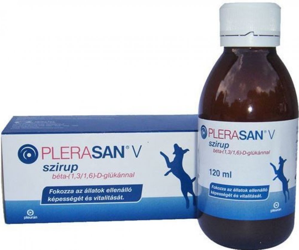 Plerasan® V sirup obsahuje účinnou látku beta-(1,3/1,6)-D-glukan pleuran, která výrazně stimuluje přirozenou imunitní odpověď organismu. Působí imunomodulačně, posilňuje vlastní imunitní mechanismy a obranyschopnost zvířat vůči infekcím. Aktivuje důležité buňky imunitního systému, hlavně makrofágy (pohlcovače cizorodých látek), neutrofilní bílé krvinky a NK-buňky (natural killer cells – přirozené zabíječe). Makrofágy hrají rozhodující úlohu v nastartování a udržovaní imunitní odpovědi, výsledkem které je zničení nežádoucích mikroorganismů a tělu cizích látek (bakterií, virů, mutovaných buněk), které způsobují často závažná onemocnění. Účinek beta-glukanu pleuran byl ve veterinární medicíně ověřen na zvýšení ochrany vůči mnohým bakteriálním, virovým, mykotickým a parazitárním chorobám.